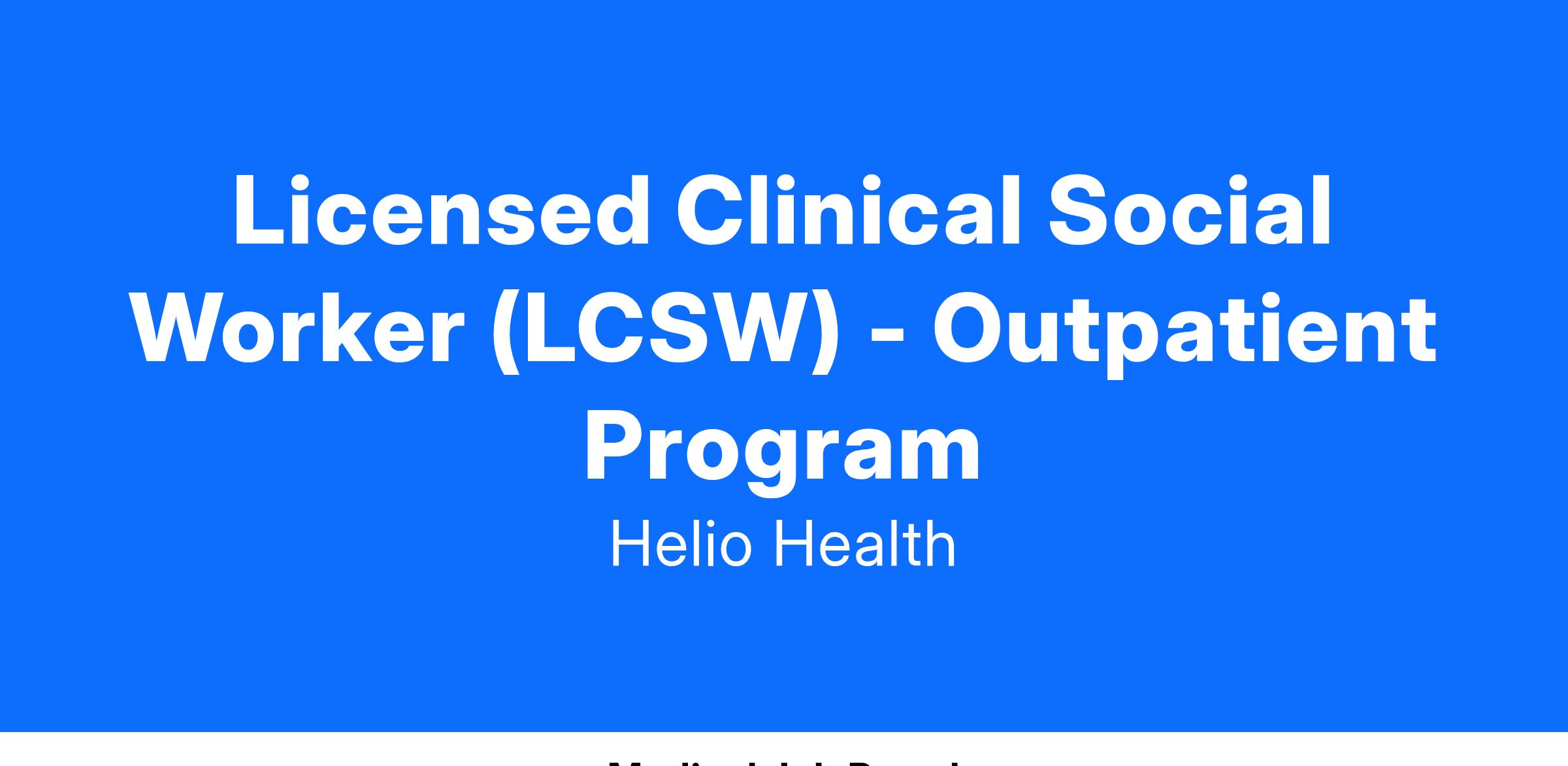 Helio Health is on a mission to treat and promote recovery from the effects of substance use, mental health disorders, and other behavioral healthcare issues. The Advanced Licensed Clinician will work on a Full-Time basis out of Helio Health’s Outpatient Certified Community Behavioral Health Clinic.