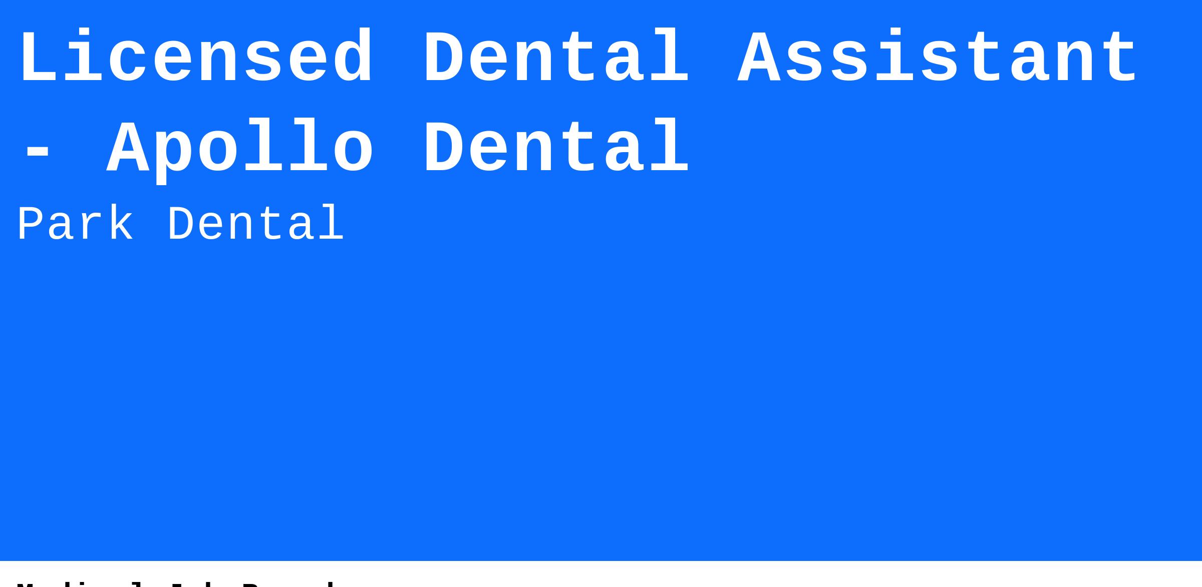 Park Dental Apollo Dental in Rochester is seeking a compassionate, professional Dental Assistant to join our team-oriented practice.
