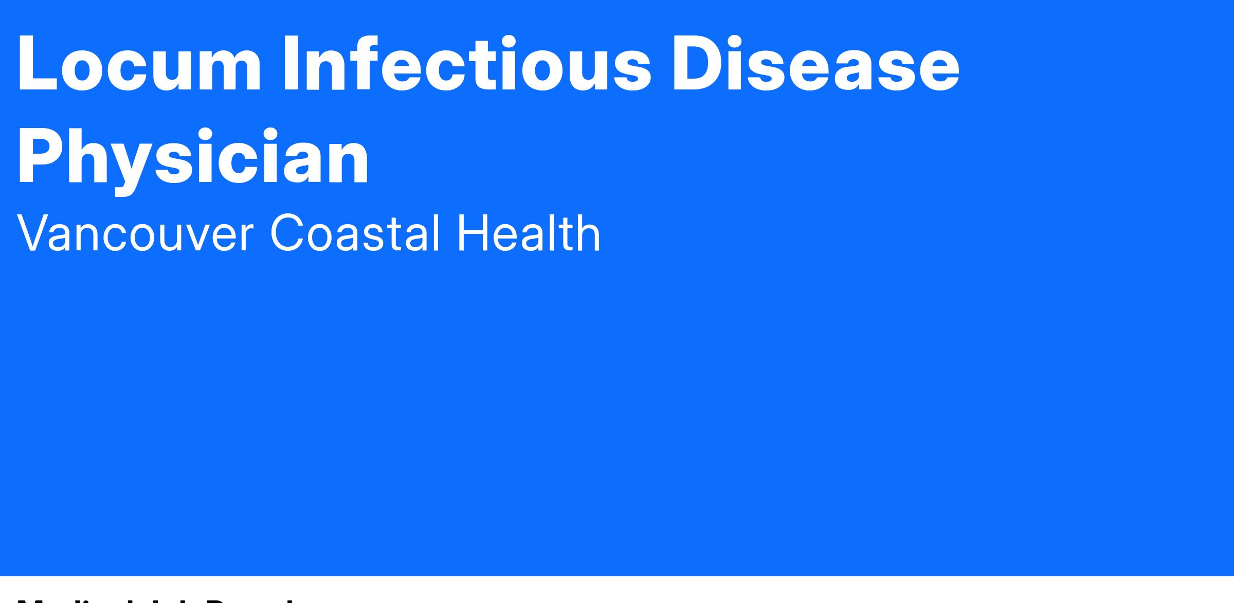 Come work as an Infectious Disease Physician with Vancouver Coastal Health (VCH)!