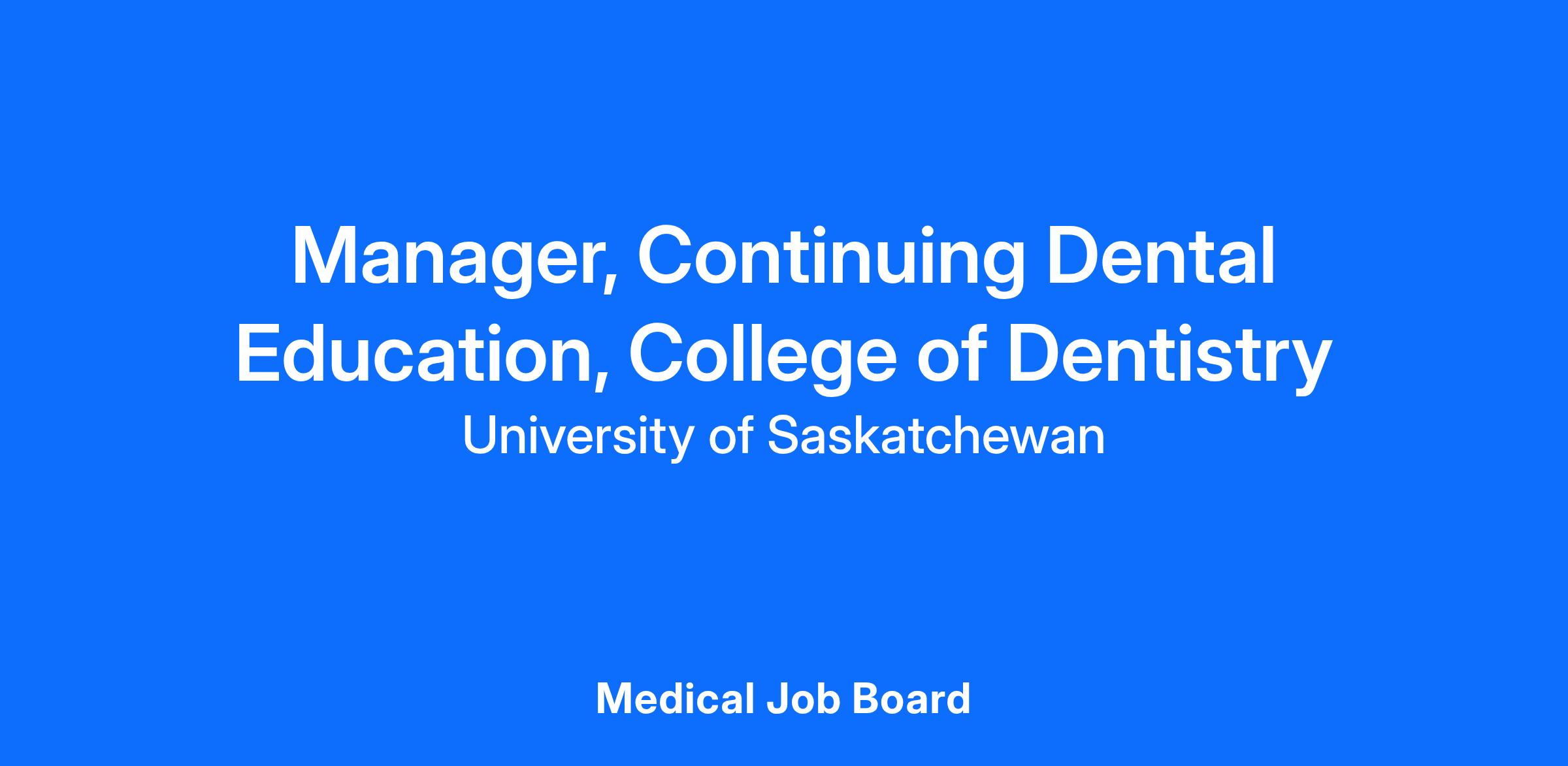 Primary Purpose The Manager, Continuing Dental Education (CDE) leads and manages all aspects of the College’s continuing education portfolio in dentistry. This role develops the annual CE program, recruits speakers, secures sponsorships, organizes lectures and hands-on courses, ensures accreditation compliance, engages external stakeholders, and supports the financial sustainability and growth of CE activities. Nature of Work This Phase 2 professional position requires autonomy, advanced judgment, and the ability to coordinate complex CE activities. The Manager works closely with academic directors, faculty, clinic leadership, communication officers, development officers, administrative staff, and industry partners. Key Responsibilities Program Planning & Development Speaker Recruitment Sponsorship & Partnership Development Course & Event Coordination Accreditation & Compliance Marketing & Communications Financial Management Stakeholder Collaboration Other Duties Qualifications Education Experience Skills & Competencies