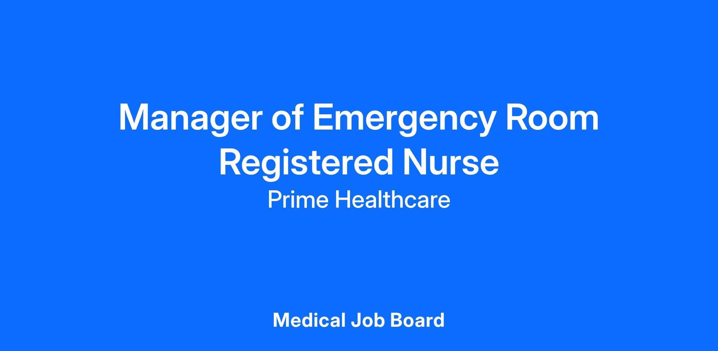 Manager of Emergency Department is responsible for the day to day management and coordination of all activities in the Emergency Department. Supervises and monitors performance of the Emergency Department staff. Interacts with the physicians, hospital staff, outside agencies, patients and patients families/significant other(s) to provide comprehensive care.
