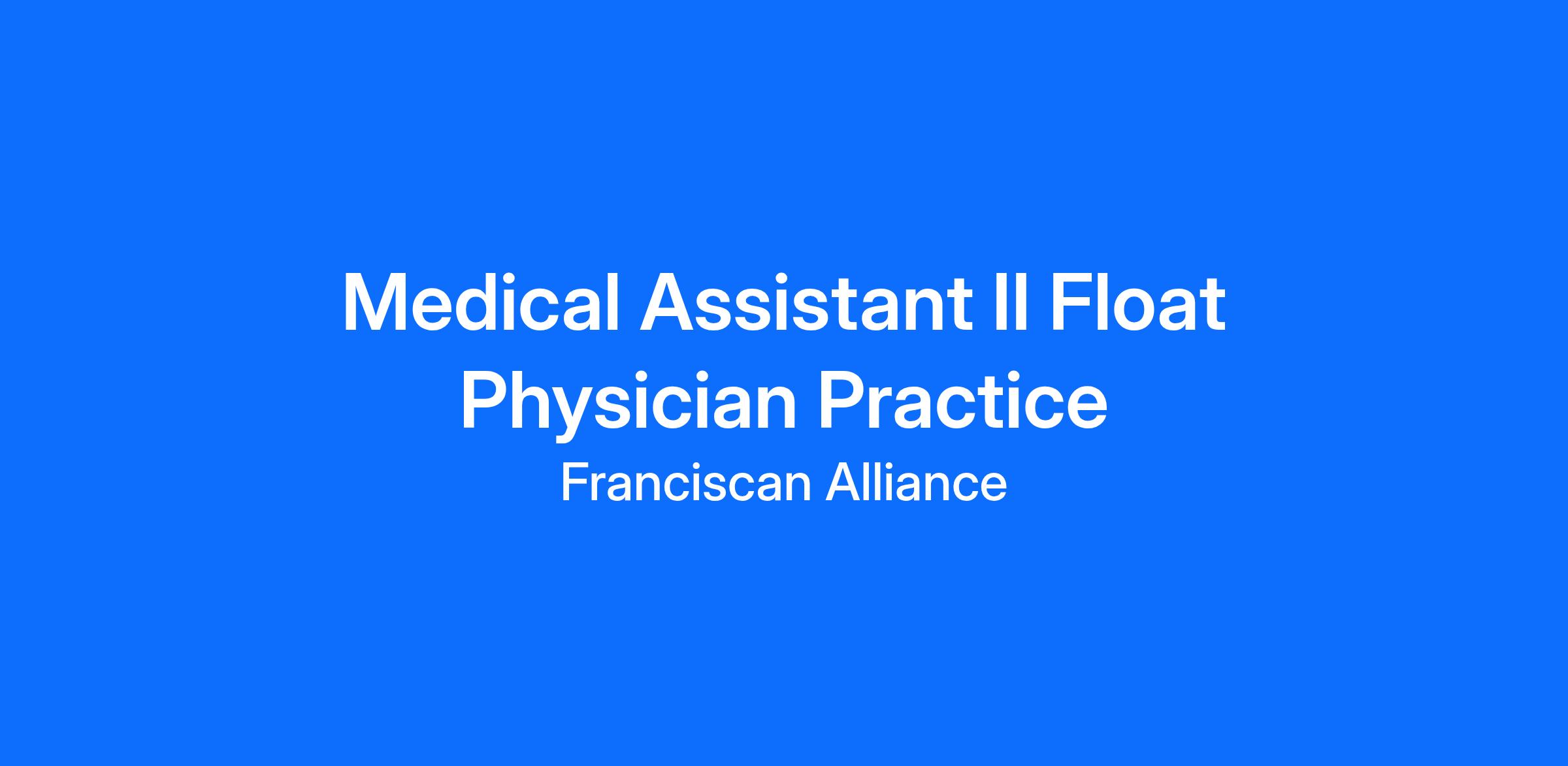 At Franciscan, our Medical Assistant Floats are critical for supporting a variety of clinical duties for multiple ambulatory clinics. This role assists providers and staff in coordinating patient care, scheduling appointments, executing physician orders for lab testing, entering information in electronic medical record system, and functions as a liaison between patients, coworkers, and providers.