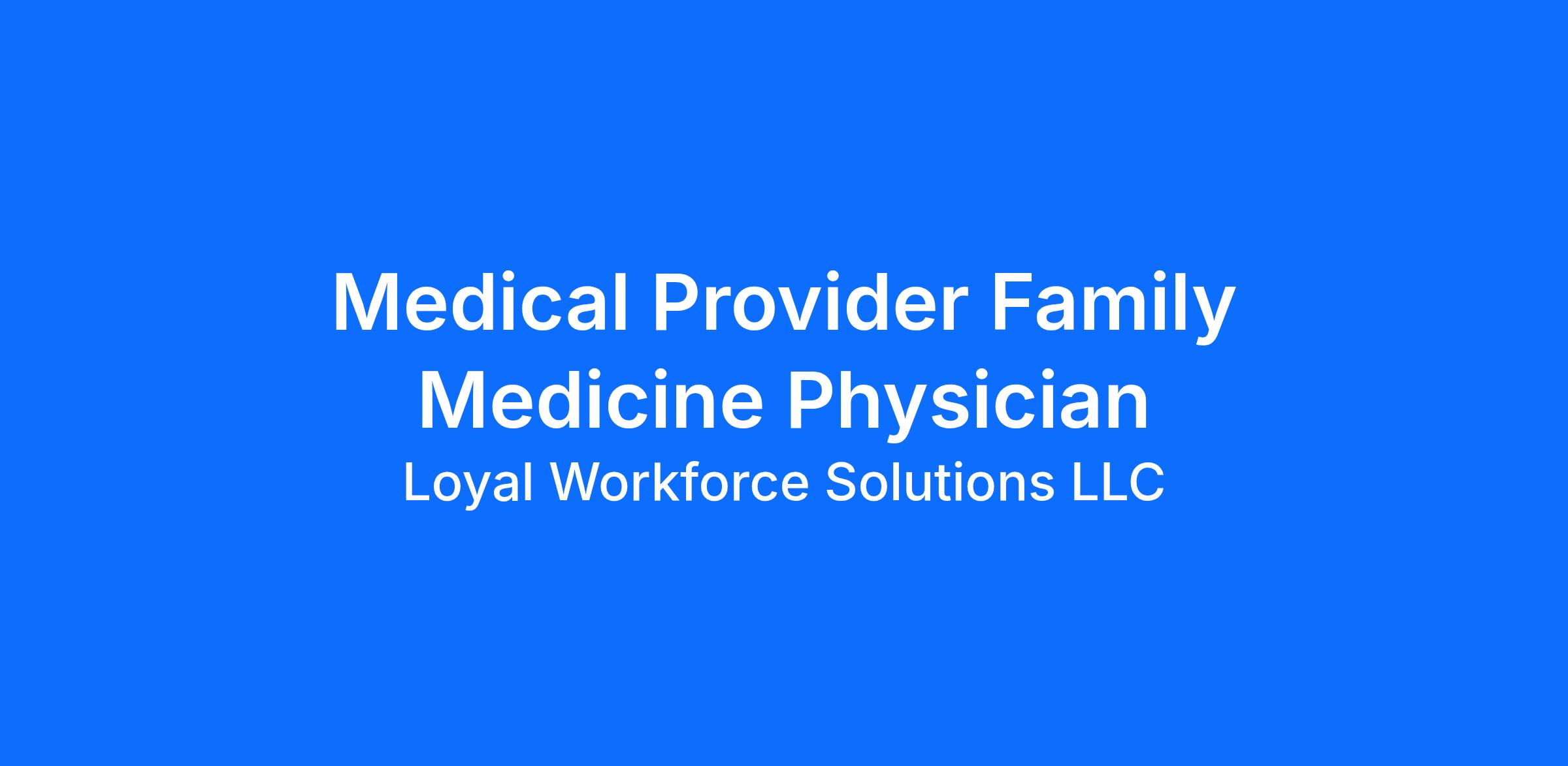 Position Title: Medical Provider – Family Medicine Physician (Primary Care, Outpatient)