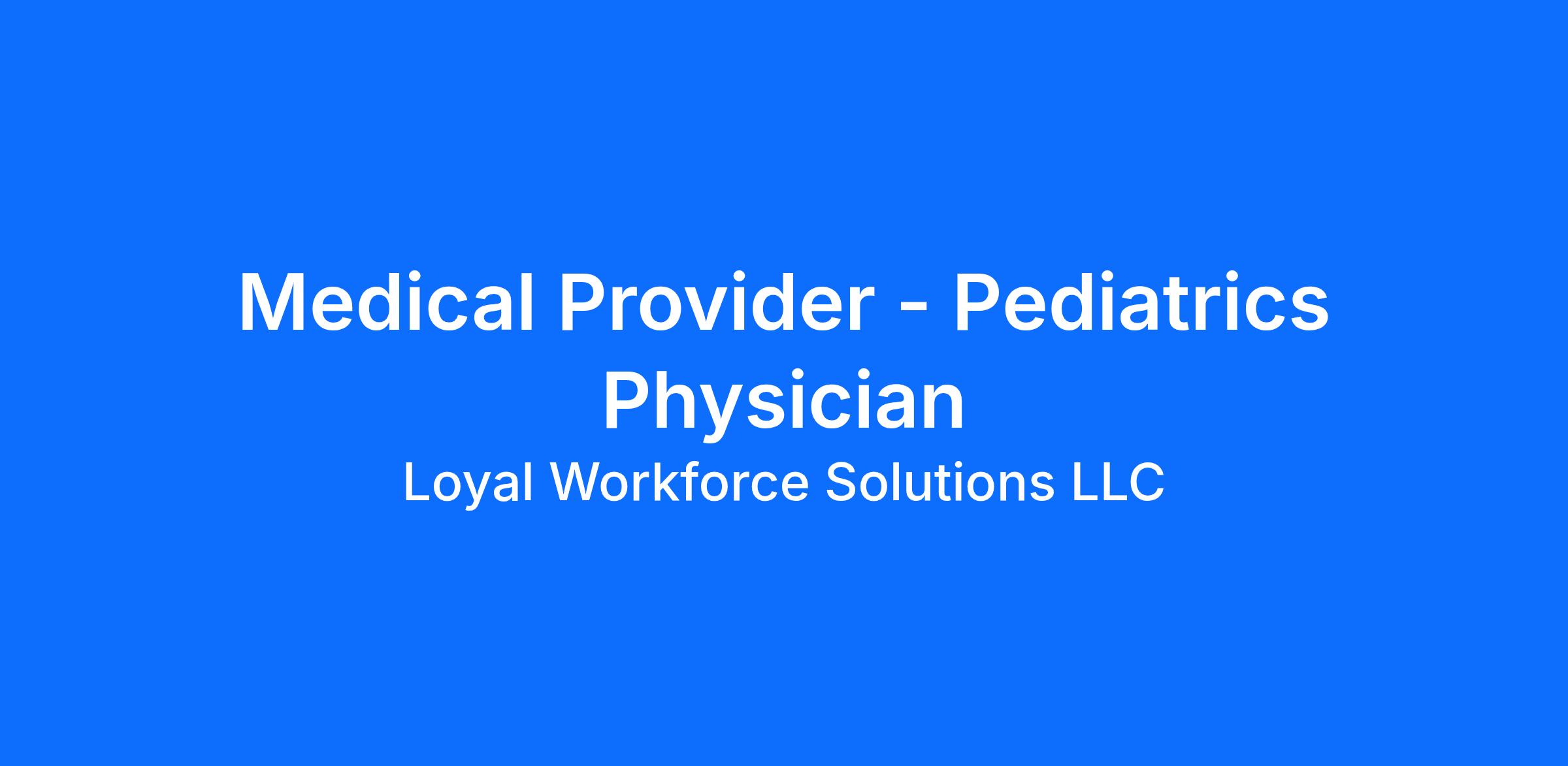 Loyal Workforce Solutions has partnered with a major Federally Qualified Health Center (FQHC) with multi-specialty outpatient clinics located throughout Los Angeles County is seeking a dedicated and mission-oriented Pediatrician.