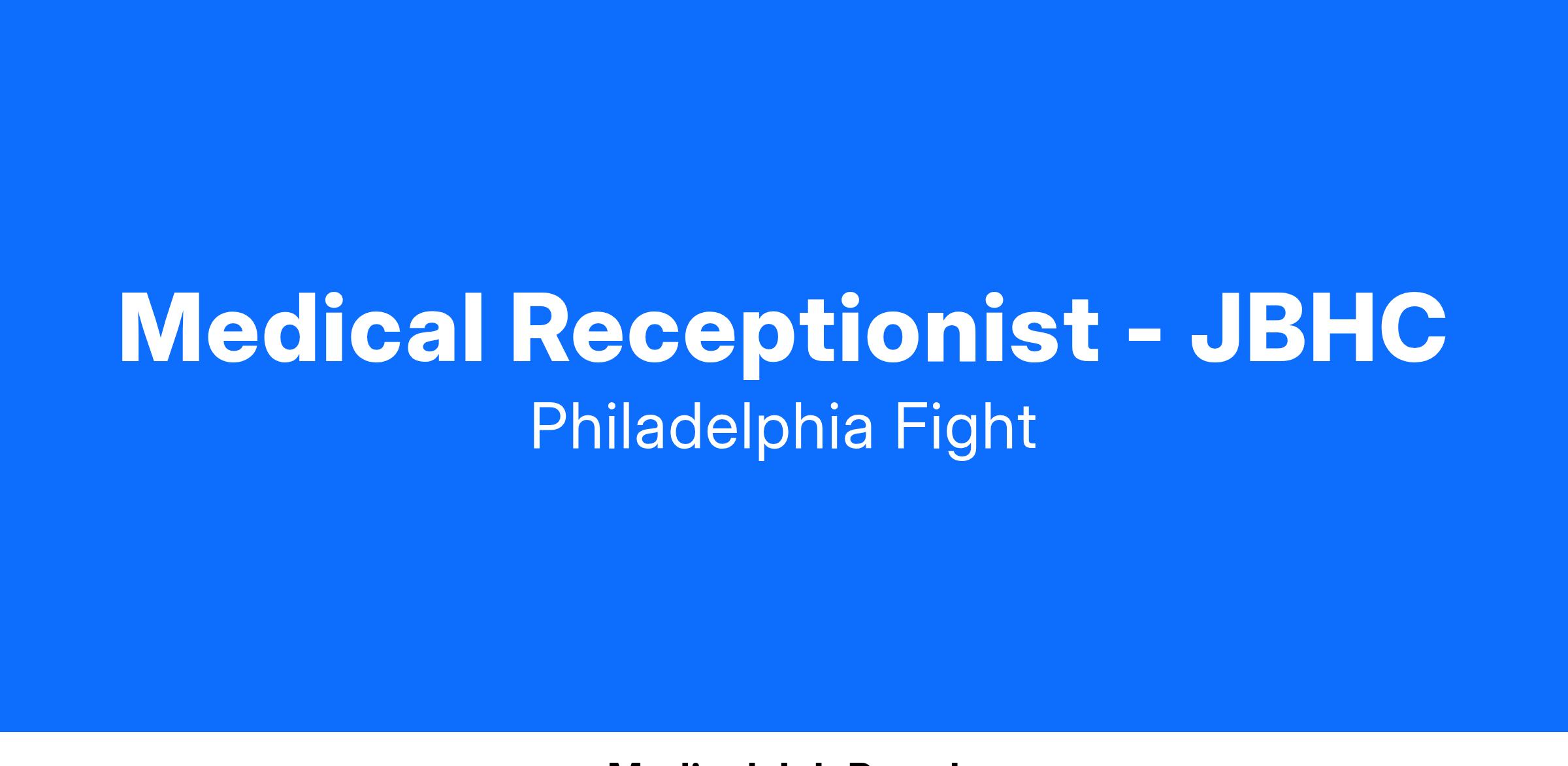 Medical Receptionist - JBHC