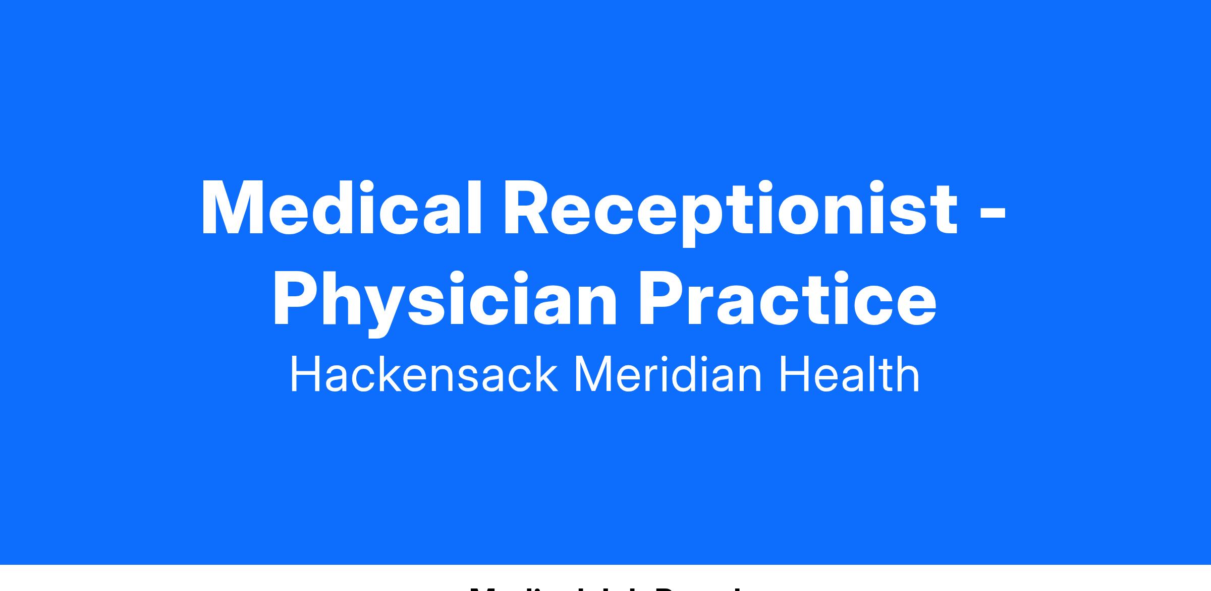 A day in the life of a Medical Receptionist at Hackensack Meridian Health includes: