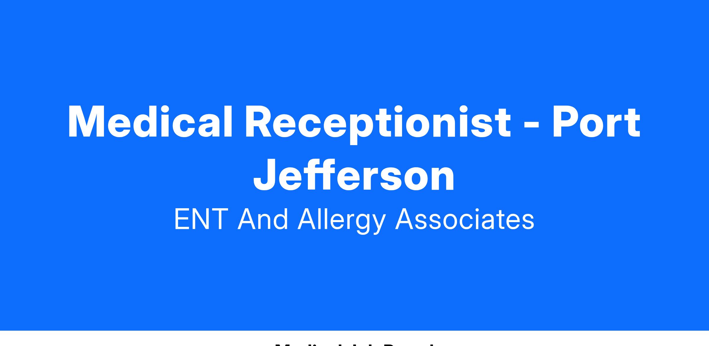 Medical Receptionist - Port Jefferson