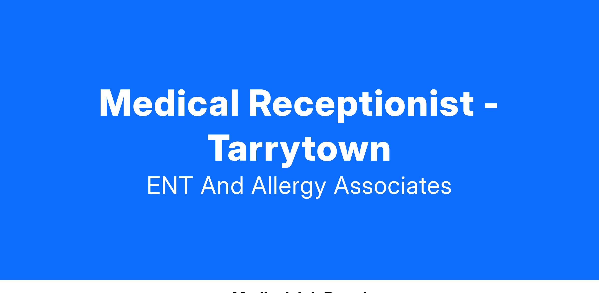 ENT and Allergy Associates, LLP and Quality Medical Management Services USA, LLC is seeking a self-motivated, people-friendly Full Time Medical Receptionist for our (Office) office location.