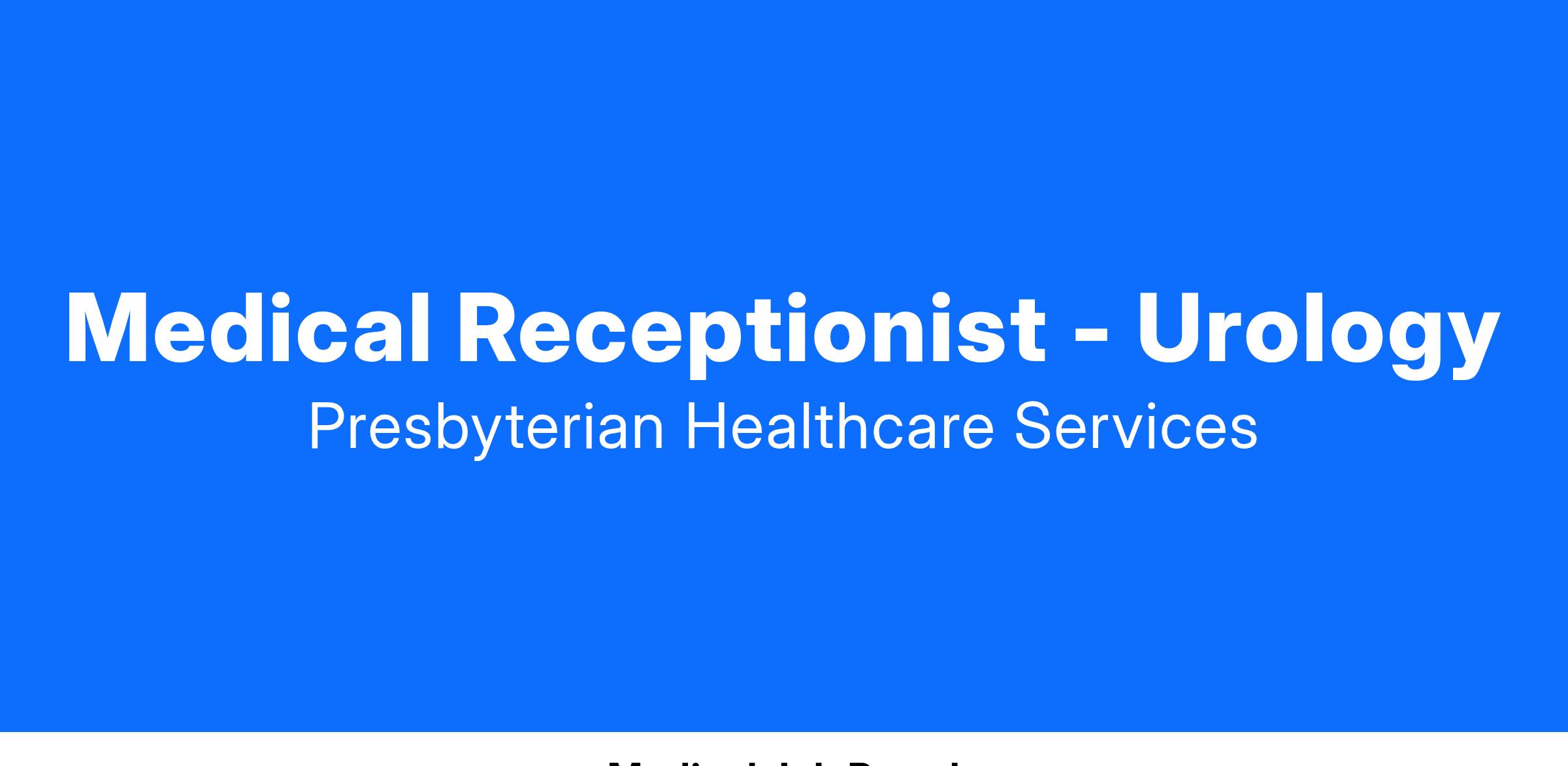 Now hiring a Medical Receptionist for Urology!