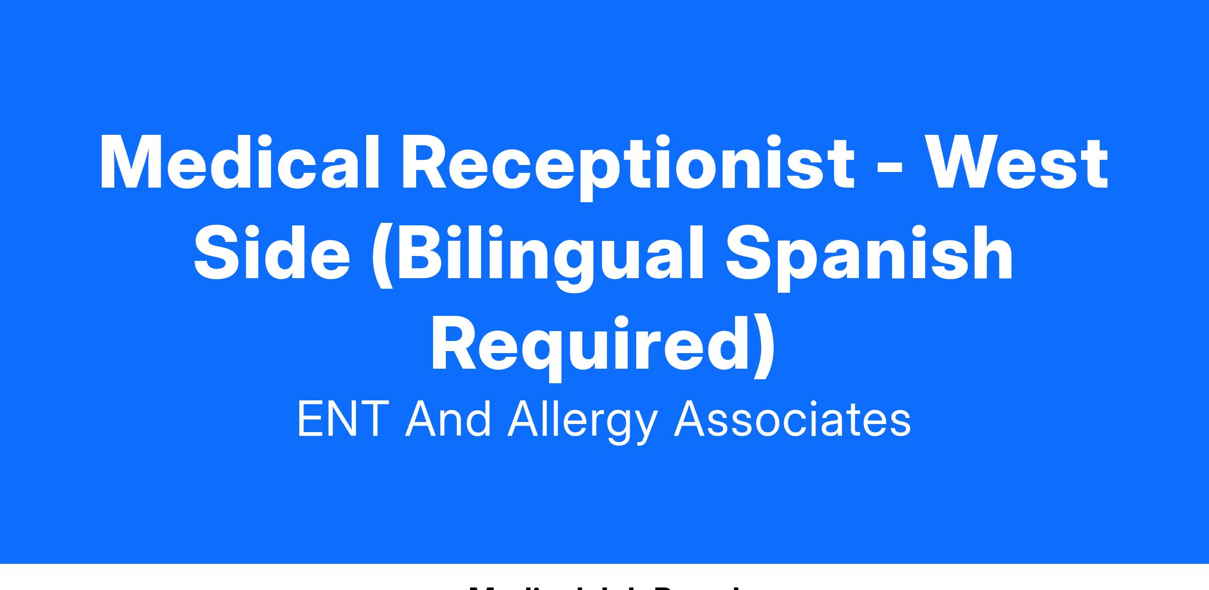 Medical Receptionist - West Side (Bilingual Spanish Required)