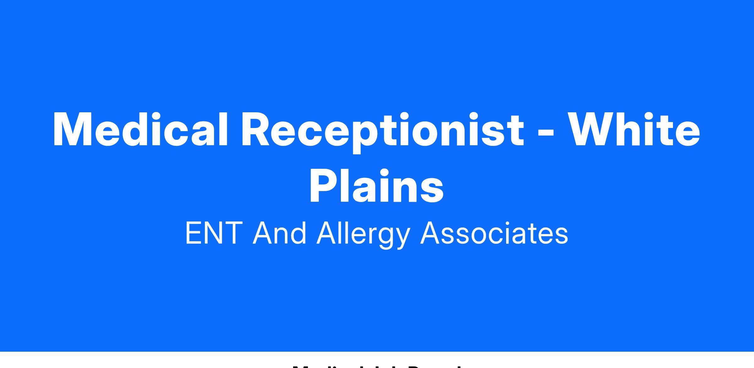 ENT and Allergy Associates, LLP and Quality Medical Management Services USA, LLC is seeking a self-motivated, people-friendly Full Time Medical Receptionist for our (Office) office location.