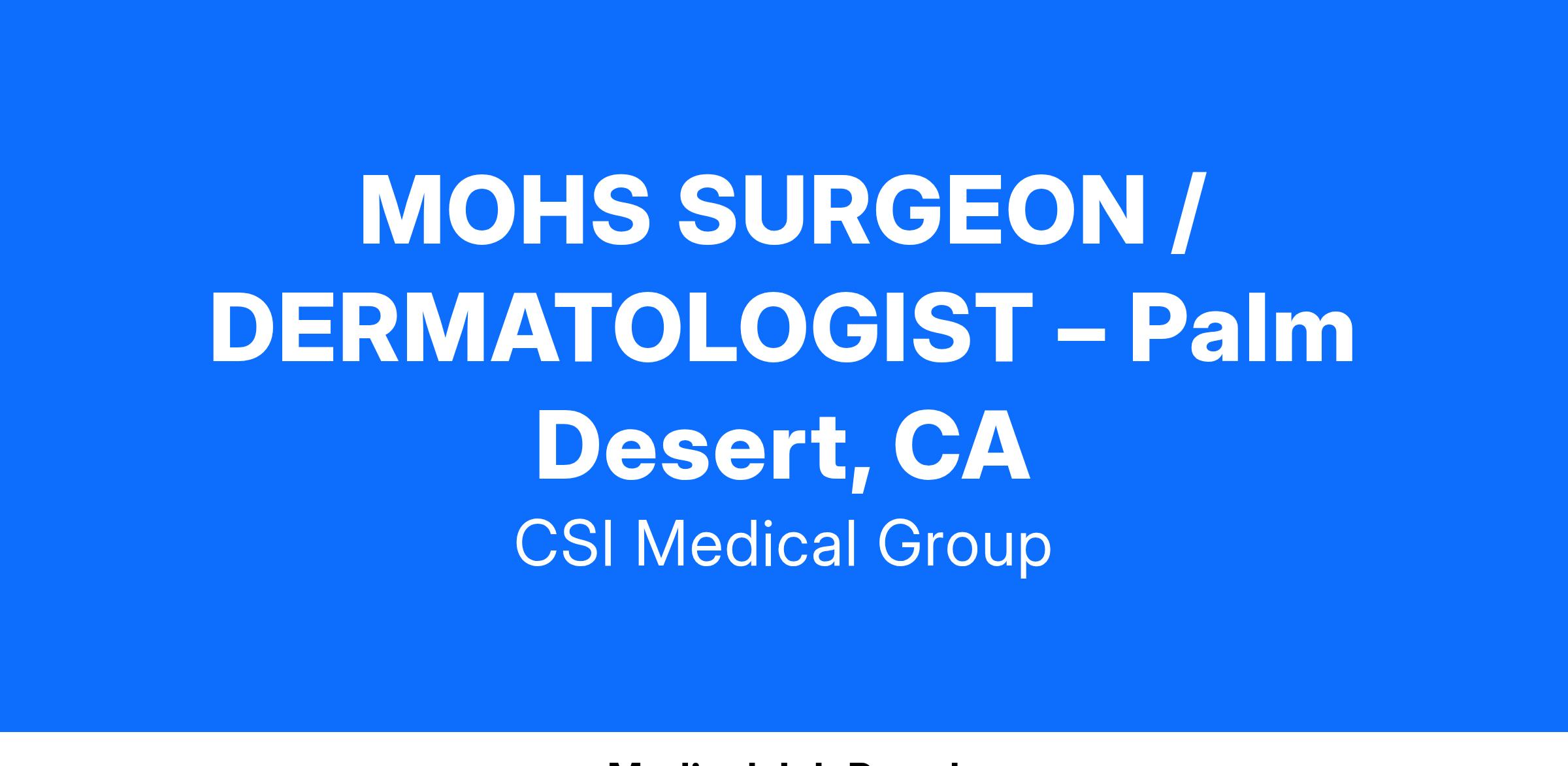 MOHS SURGEON / DERMATOLOGIST – Palm Desert, CA