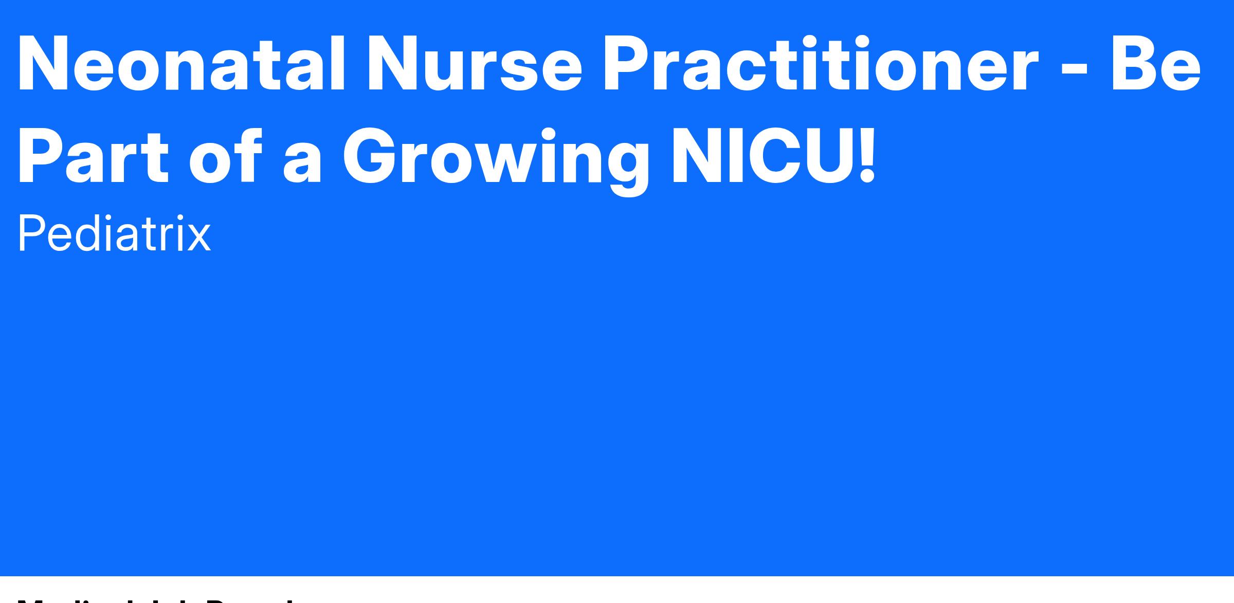 Exciting opportunity to join Pediatrix Medical Group at United Regional Healthcare System!