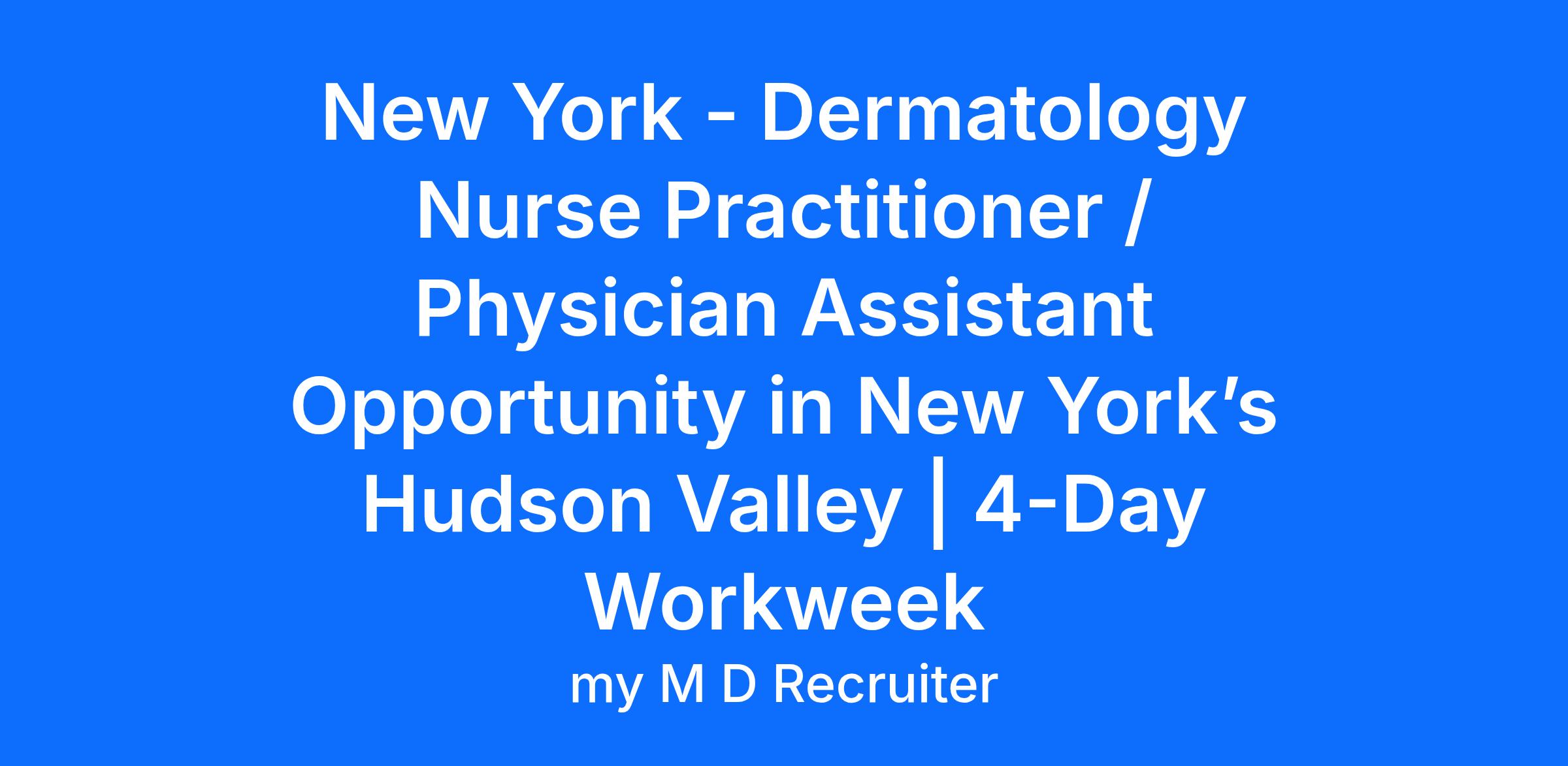 If you’re ready to take the next step in your dermatology career—one that offers clinical growth, financial opportunity and a lifestyle you can truly enjoy—this Hudson Valley opportunity deserves a closer look.