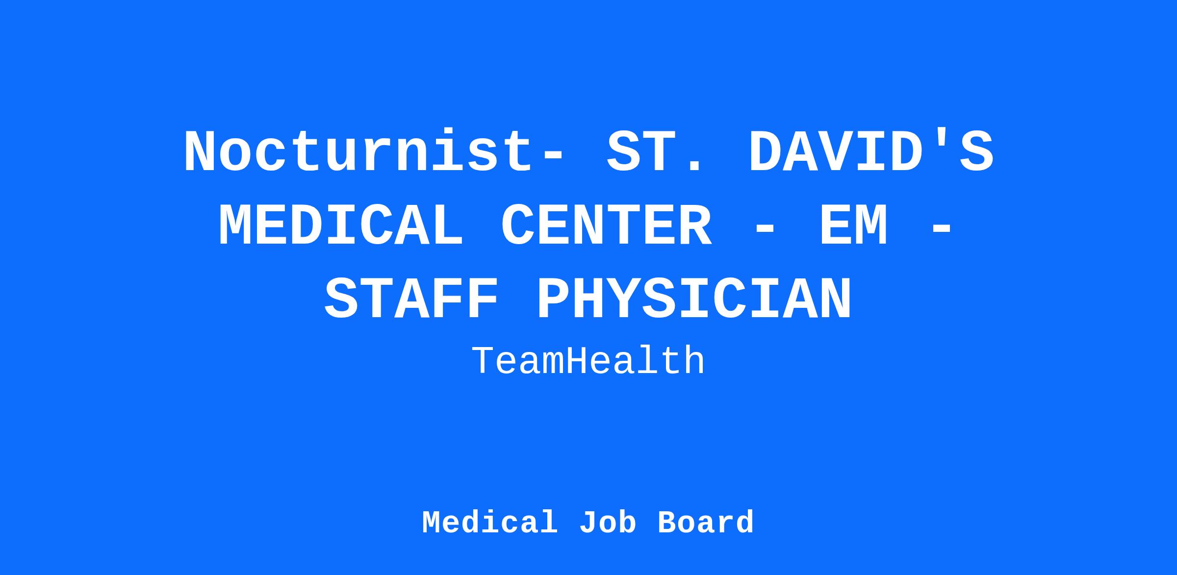 Job DescriptionTeamHealth has an exciting, full-time opportunity for a board-certified or board-eligible emergency medicine (EM) physician to join our award-winning team within the St. David's Healthcare system in Austin, Texas.