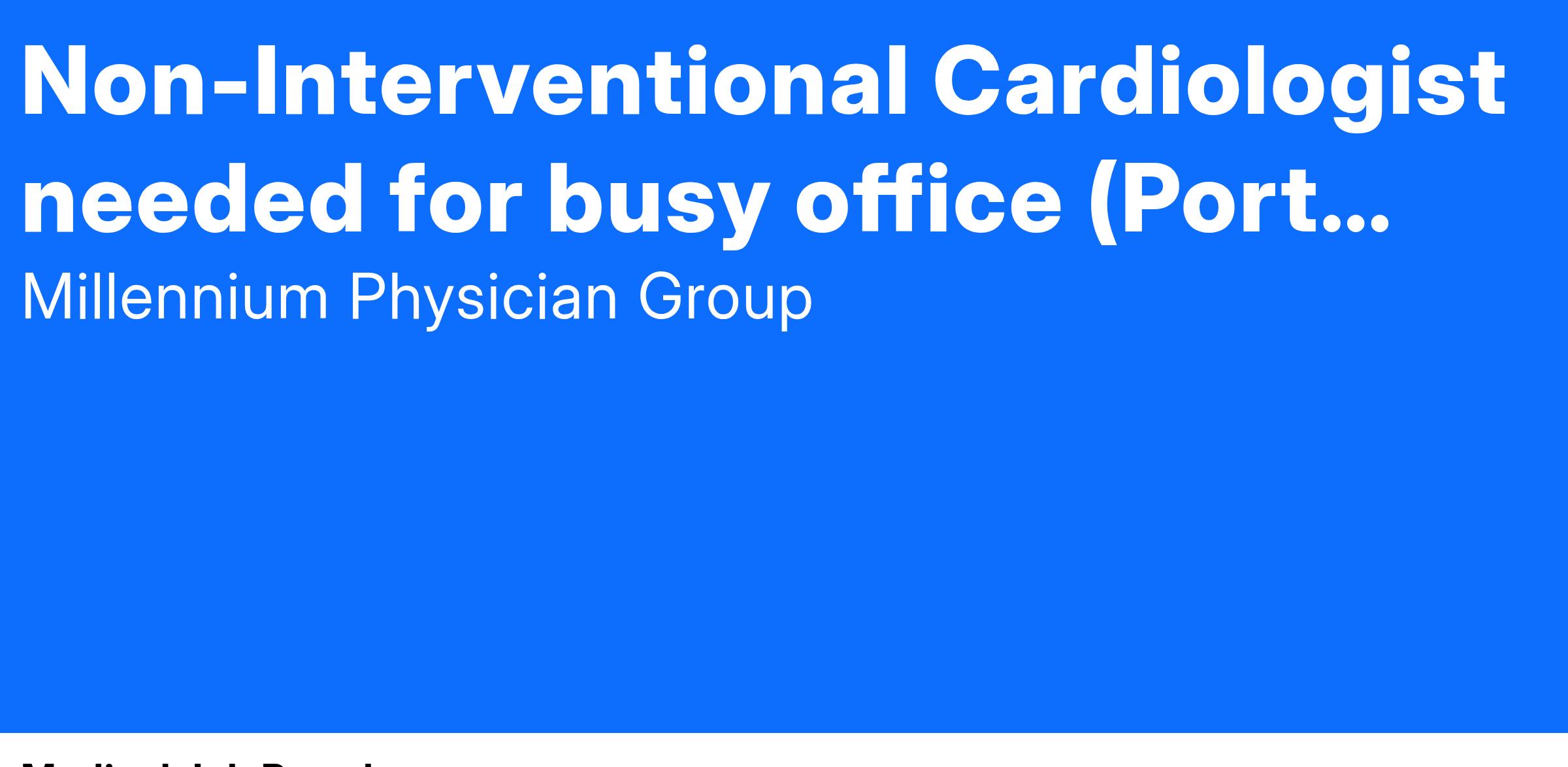 We have an opening for an Non-Interventional Cardiologist in our busy Port Charlotte office in sunny Florida!