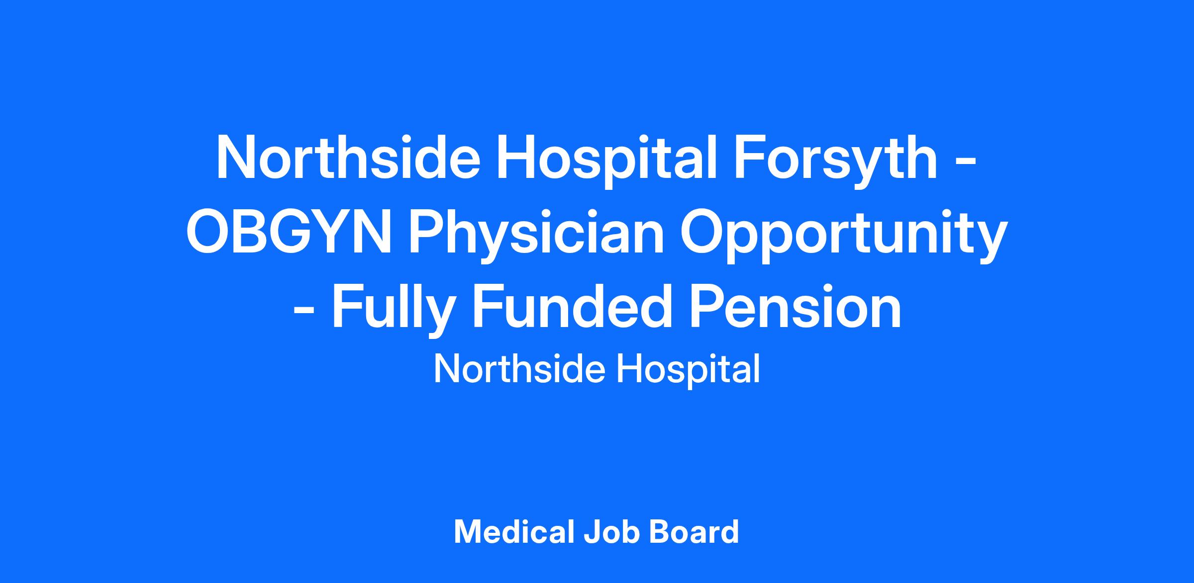 Northside Hospital is seeking a full-time OBGYN Physician to join our North Pointe OB/GYN Physician Group in Cumming, GA. This team is a long-standing, highly respected women’s health practice on the Northside Hospital Forsyth (NHF) campus. We are seeking a board-certified or board-eligible OB/GYN to join this busy, high-volume, family-like practice with outstanding hospital support and a fully funded pension.