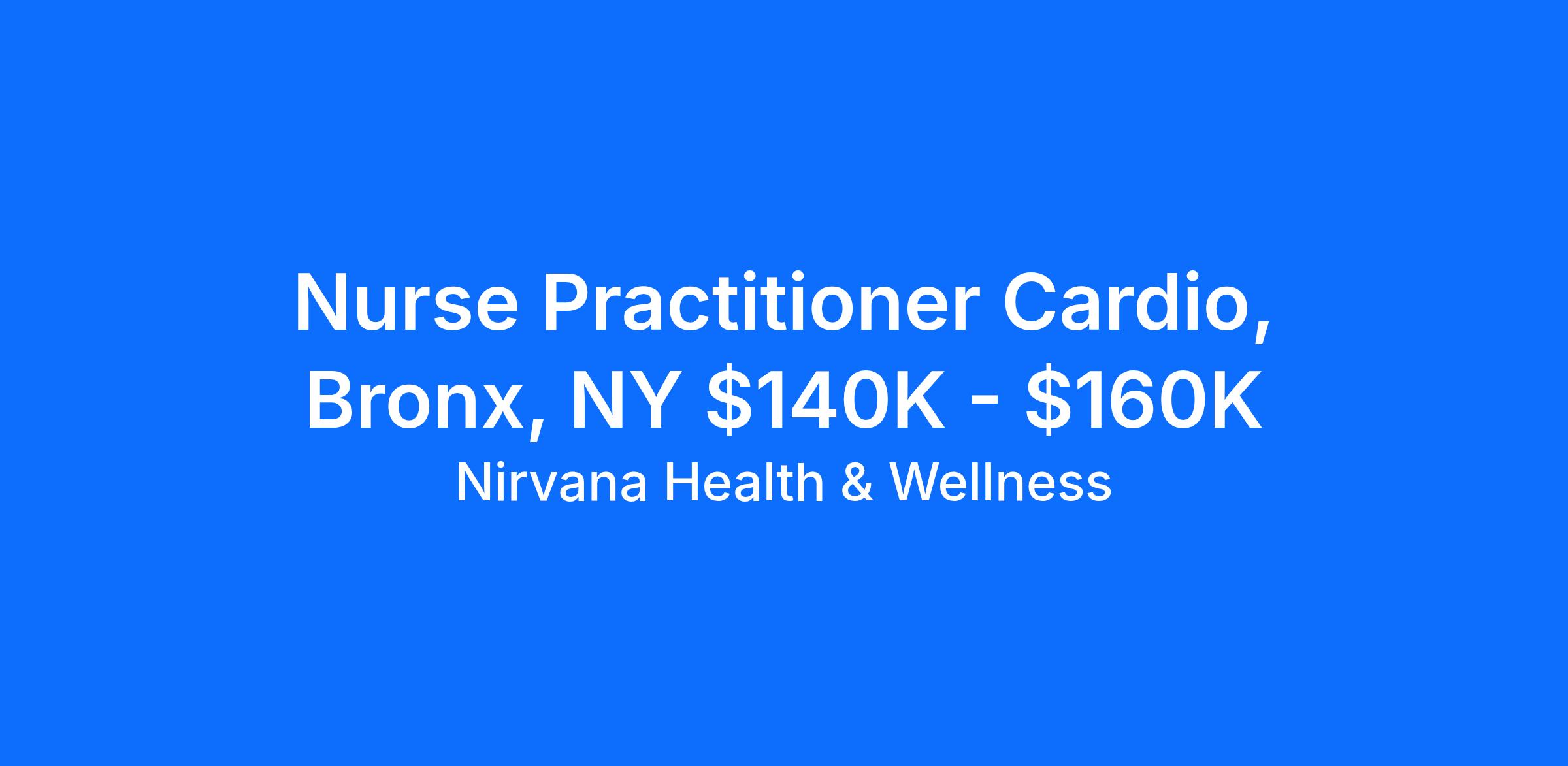 Nurse Practitioner or Physician Assistant - Cardio, Bronx, NY $140K - $160K <\/span> <\/span><\/div>