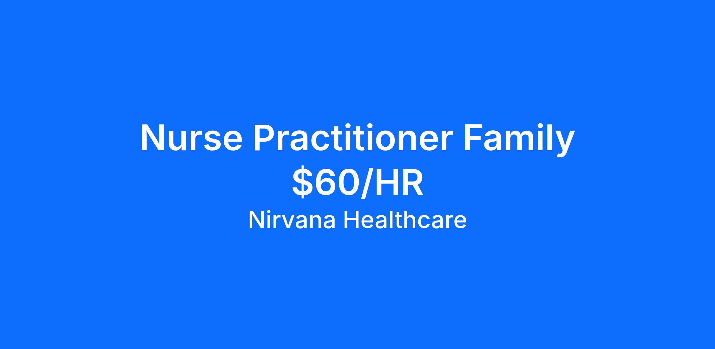 Nurse Practitioner Family $60/HR - $65/HR