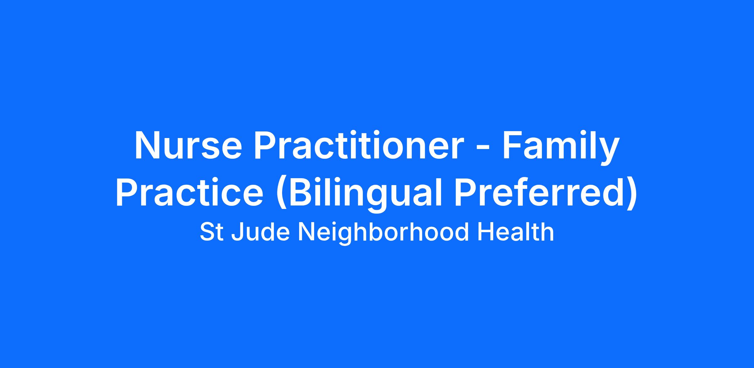 St. Jude Neighborhood Health Centers is an equal opportunity employer. We are committed to developing a diverse workforce and cultivating an inclusive environment. We value diversity and believe that we are strengthened by the differences in our experiences, thinking, culture, and background. We strongly encourage applications from candidates who demonstrate that they can contribute to this goal. We do not discriminate on the basis of race, religion, color, national origin, gender, sexual orientation, age, marital status, veteran status, disability status or any protected basis.