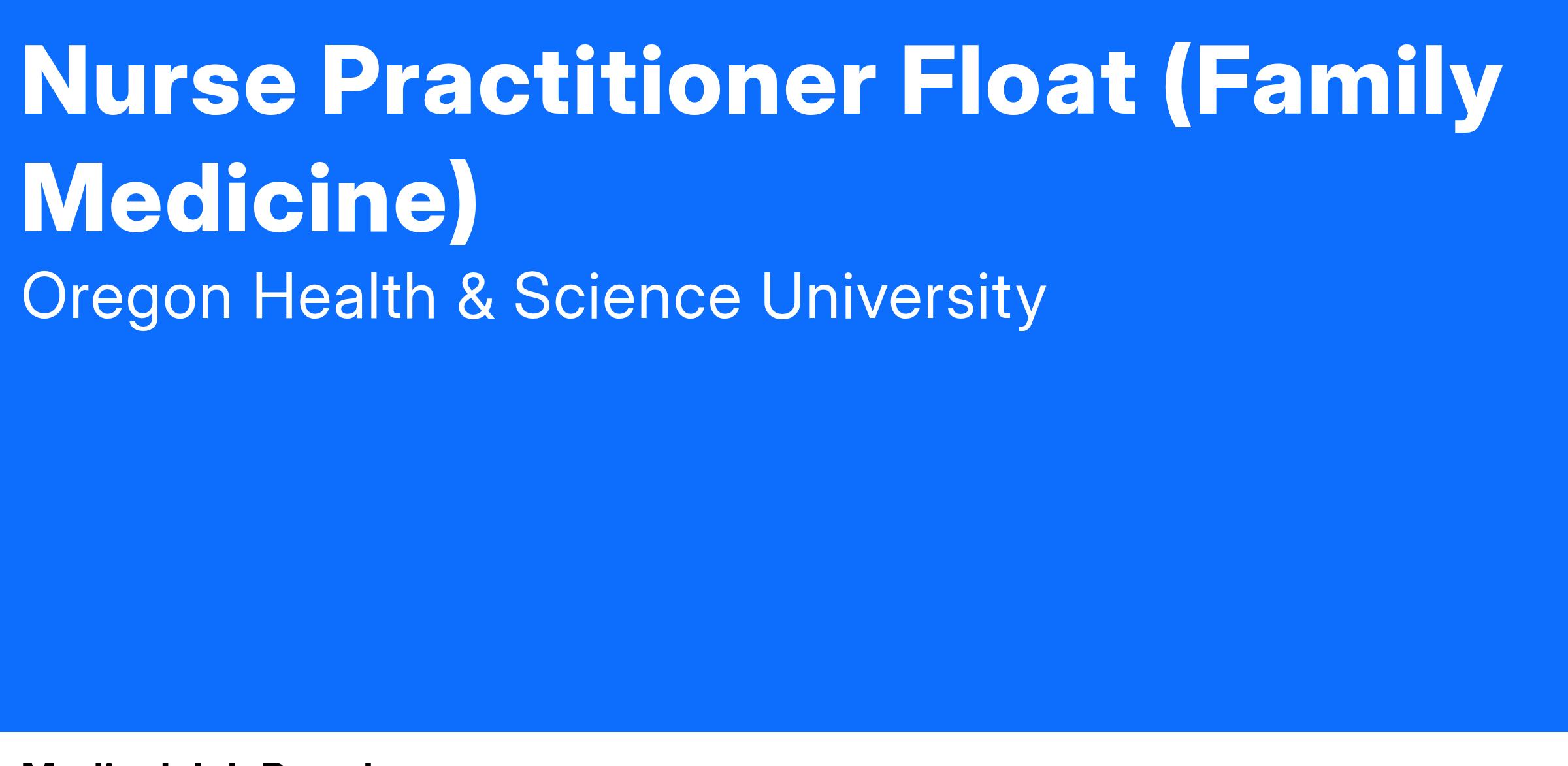 OHSU Family Medicine is part of OHSU School of Medicine. OHSU Family Medicine focuses on family health. We provide preventive, primary and specialty care for you, your children, your spouse, your parents and your grandparents. We provide all that family medicine has to offer - from maternity care through geriatrics. Our clinics are home to more than 120,000 patients every year, but despite the large number, our physicians, nurses and other clinic staff know their patients - and their families - by name. OHSU Family Medicine strongly supports the comprehensive scope to provide the highest level of care for our community. The clinical work includes but not limited to all ages of life including newborn to end of life and supporting patients with substance use disorder including medication-assisted treatment and gender affirming care. OHSU embraces diversity and welcomes all patients.