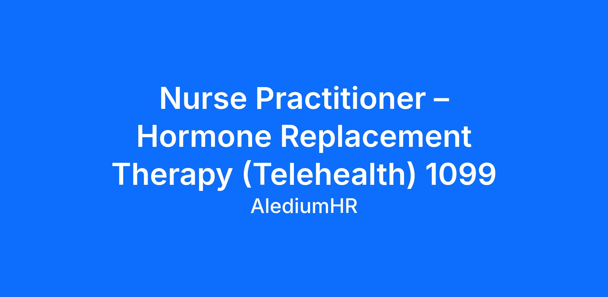 We are seeking experienced, licensed Nurse Practitioners with at least 1 year of experience in Hormone Replacement Therapy (HRT) for both men and women.