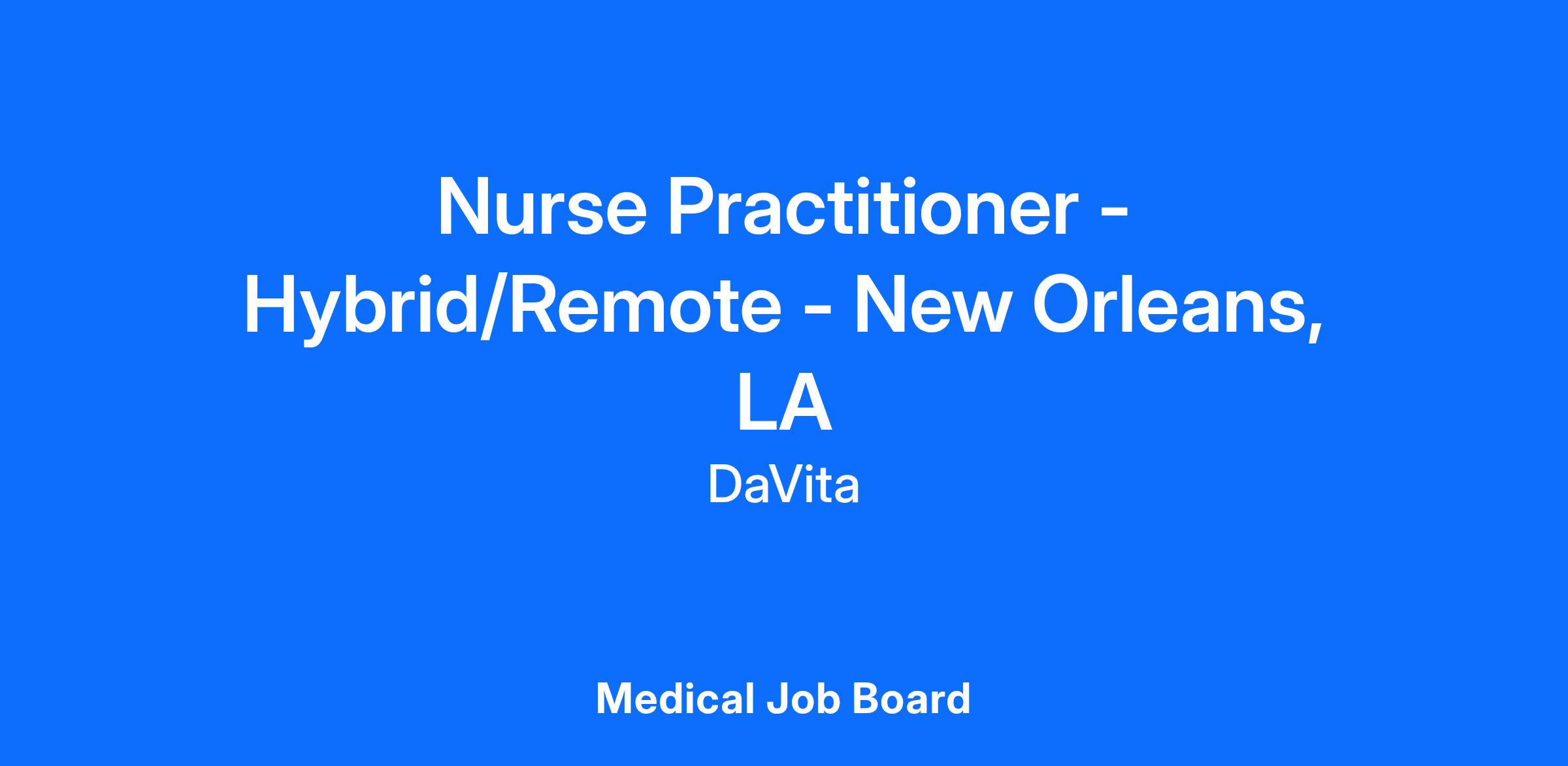 Are you a Nurse Practitioner ready to transform lives and make a real difference for patients with complex kidney conditions? DaVita IKC is looking for a passionate NP to join our team in New Orleans, LA, helping patients navigate a challenging healthcare system while receiving holistic, integrated care.