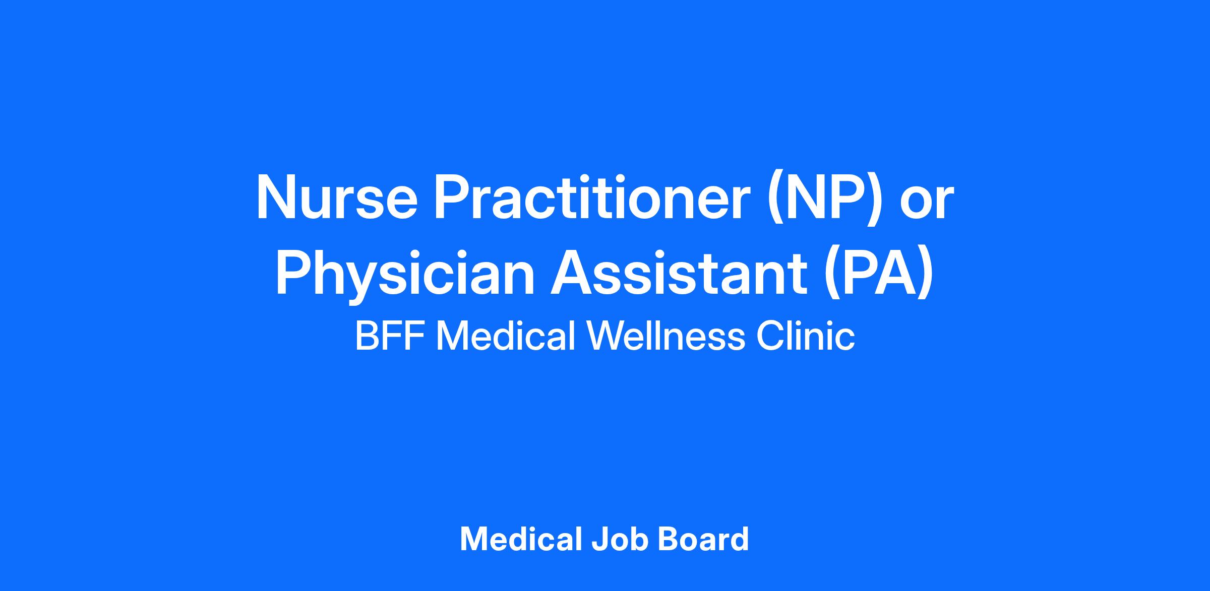 Integrative, preventive medicine first. BFF Medical Wellness Clinic delivers proactive, root-cause care that blends functional medicine, hormone optimization, metabolic health, and device-based aesthetics to prevent disease, improve longevity, and elevate quality of life. We are hiring a high-performing, adaptable clinician who learns quickly on the job, executes with excellence, and thrives in a results-driven environment.