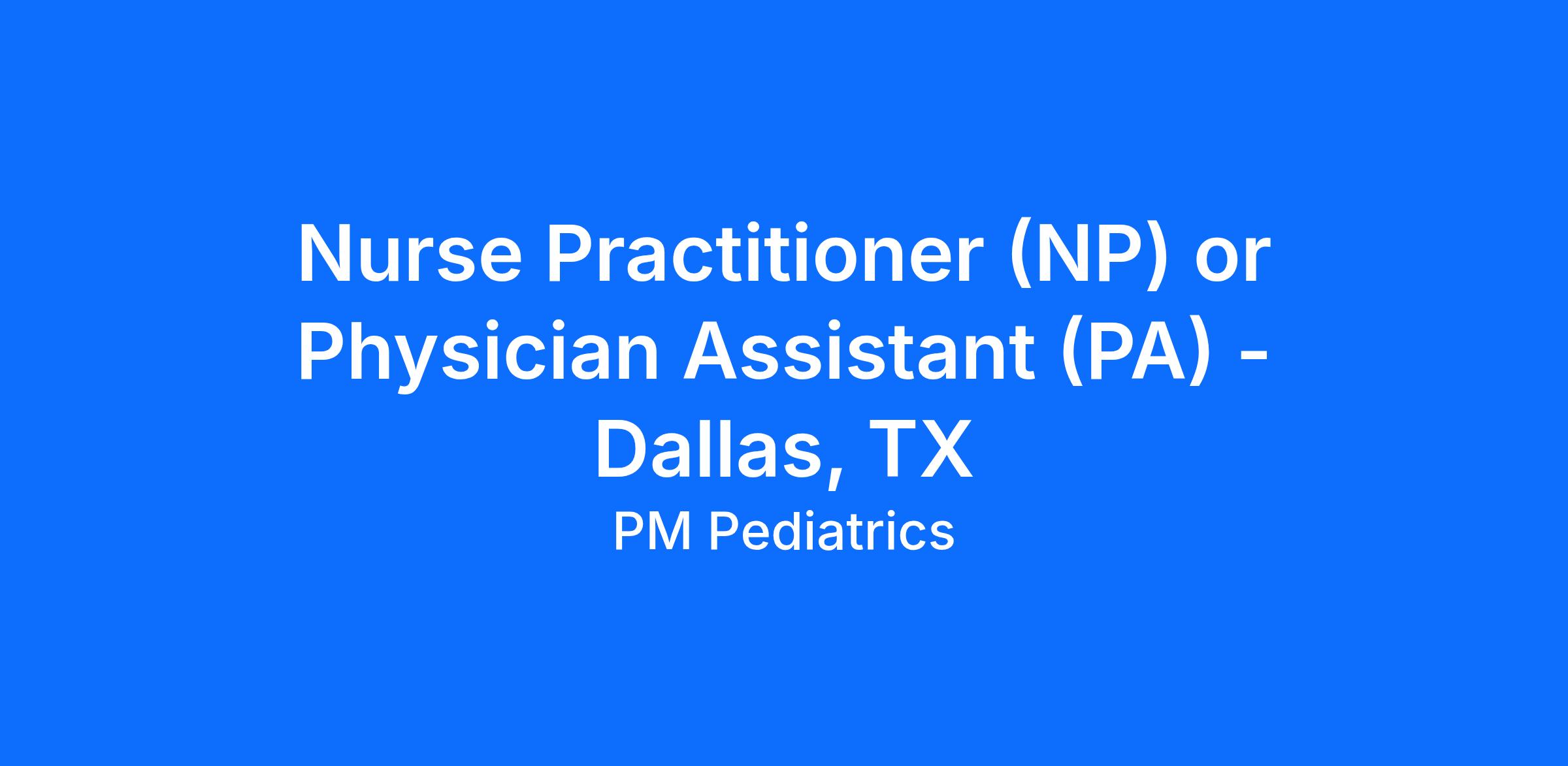 PM Pediatric Care is hiring Advanced Practice Providers (APPs) with significant pediatric or urgent care/ER experience to join our team. Under the guidance of the local clinical leaders, APPs are responsible for evaluating and providing evidence-based treatment to pediatric patients in an urgent care setting.