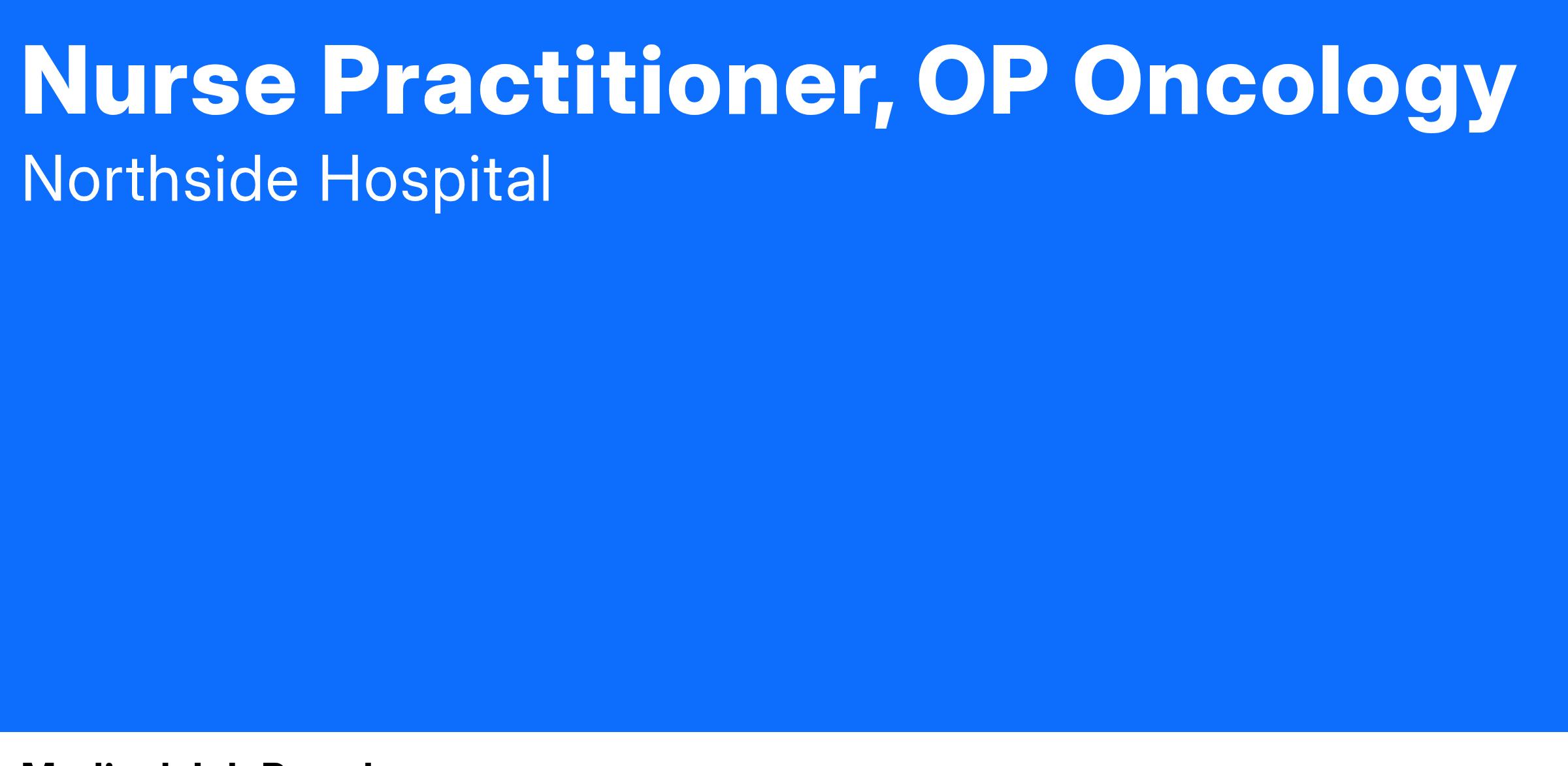 Northside Hospital is award-winning, state-of-the-art, and continually growing. Constantly expanding the quality and reach of our care to our patients and communities creates even more opportunity for the best healthcare professionals in Atlanta and beyond. Discover all the possibilities of a career at Northside today.
