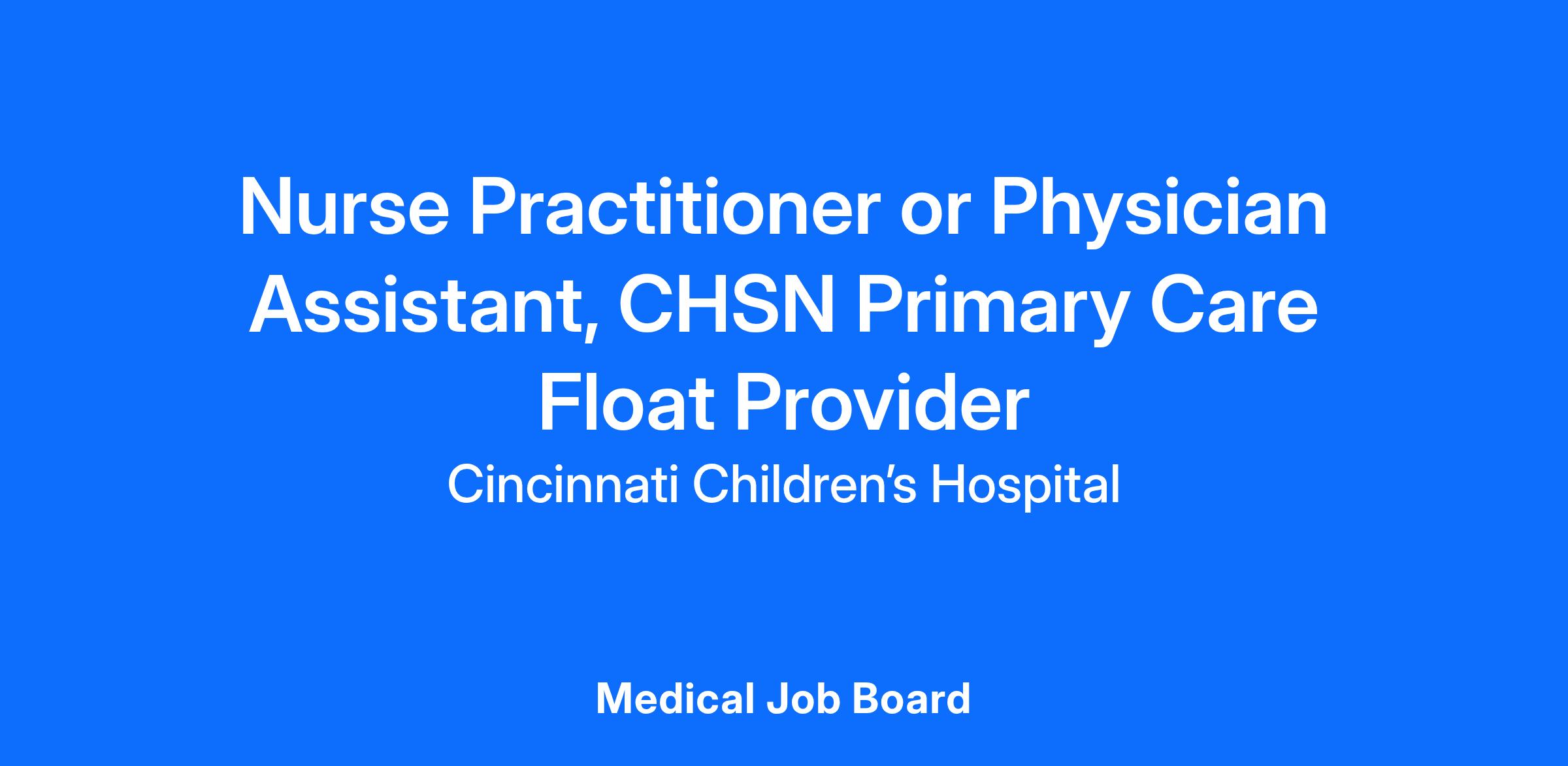 Pediatric Primary Care from newborn to young adult including well and ill child visits including mental health. APP will be hired into a “long term float” assignment between all CHSN office locations including Batesville/Greensburg IN, NKY, Mason, Liberty, Springdale, Loveland, Wilmington, Centerville, Kenwood, and school-based health centers.