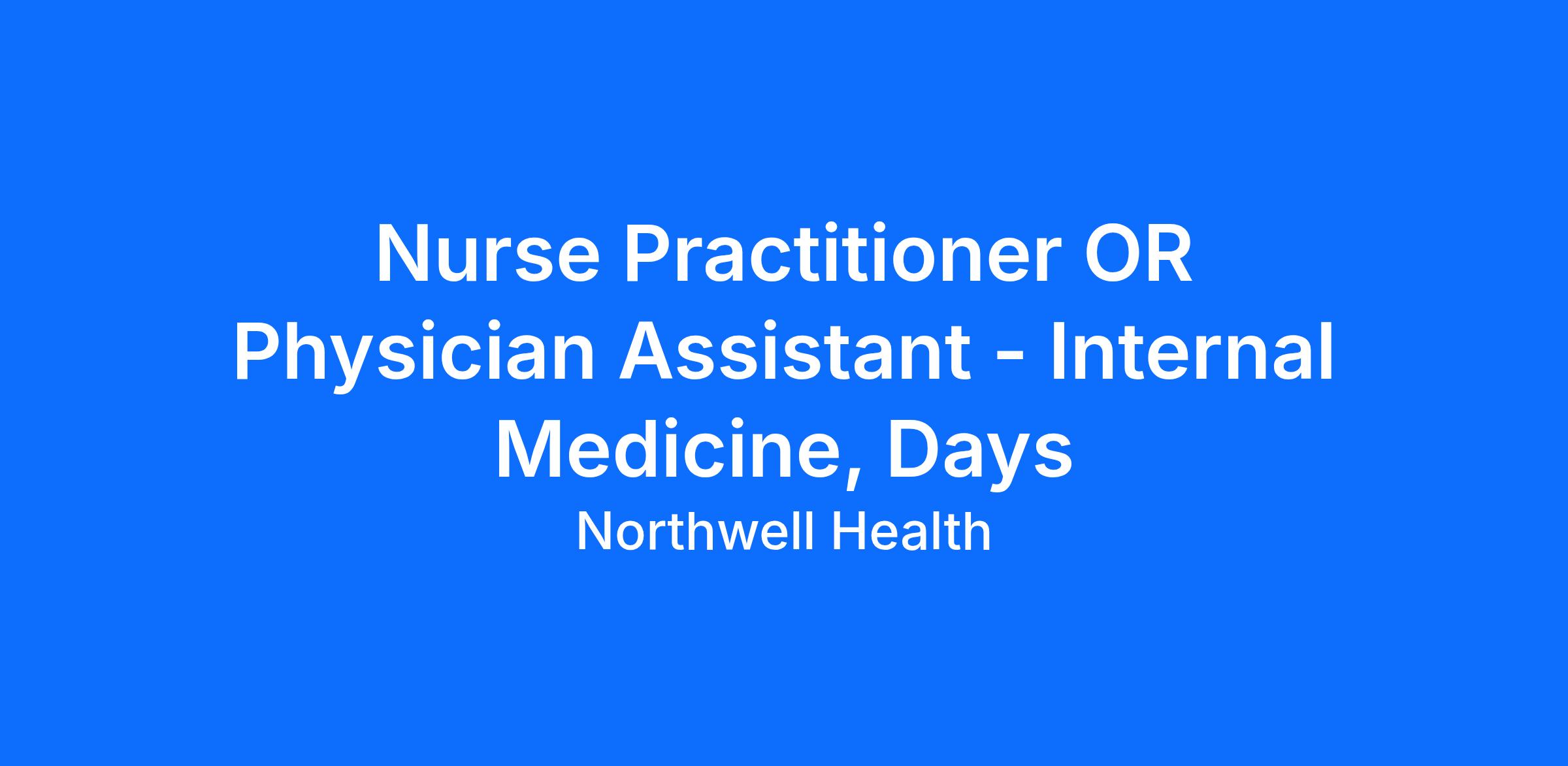 Nurse Practitioner OR Physician Assistant - Internal Medicine, Days