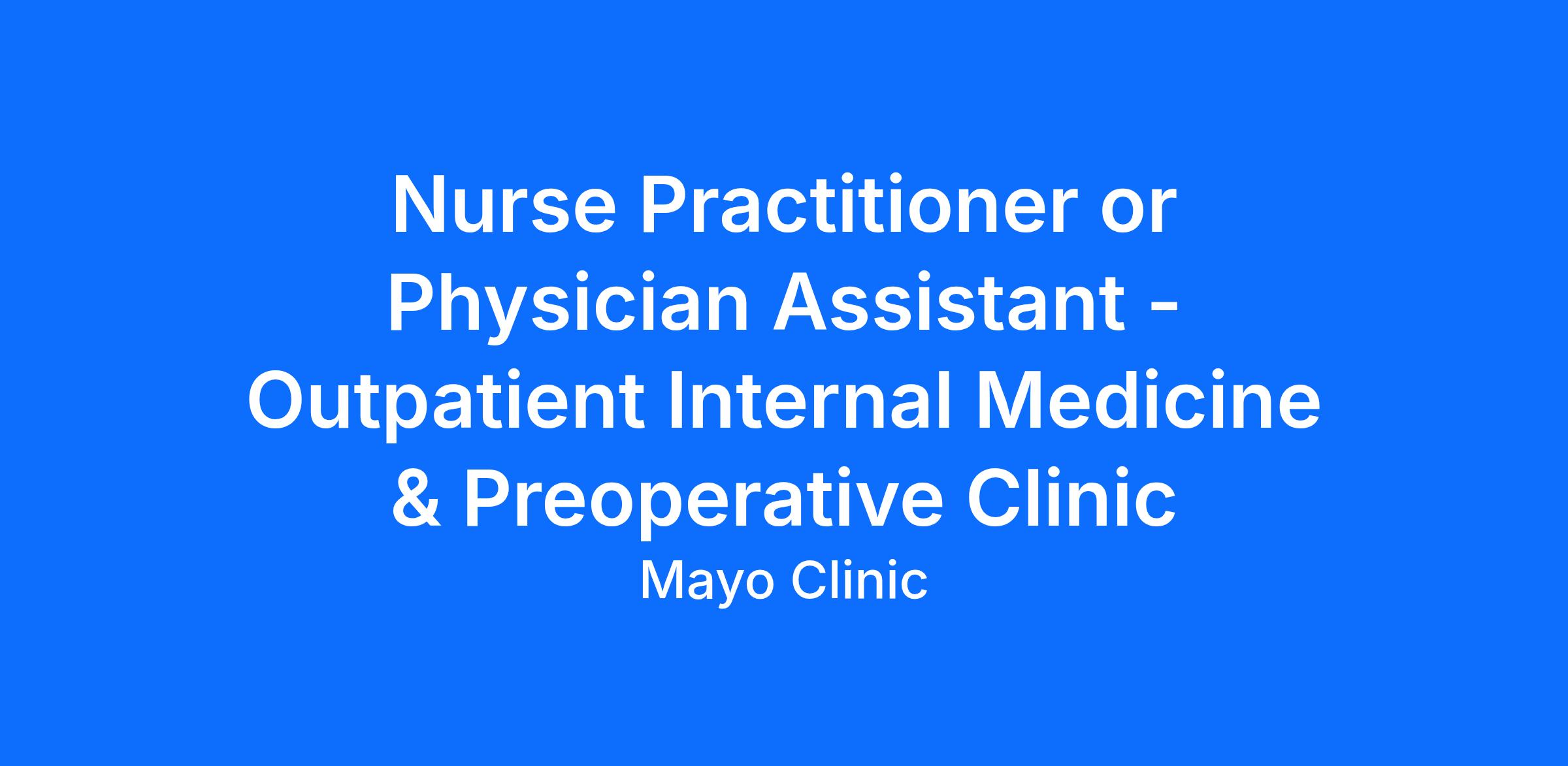 Outpatient Internal Medicine & Preoperative Clinic is looking for a Nurse Practitioner or Physician Assistant to join their Mayo Clinic Health System team in Eau Claire, WI. This role provides competent medical care to patients within the Nurse Practitioner/Physician Assistant scope of practice. Exercises autonomy in medical decision making and provides a broad range of diagnostic and therapeutic services.