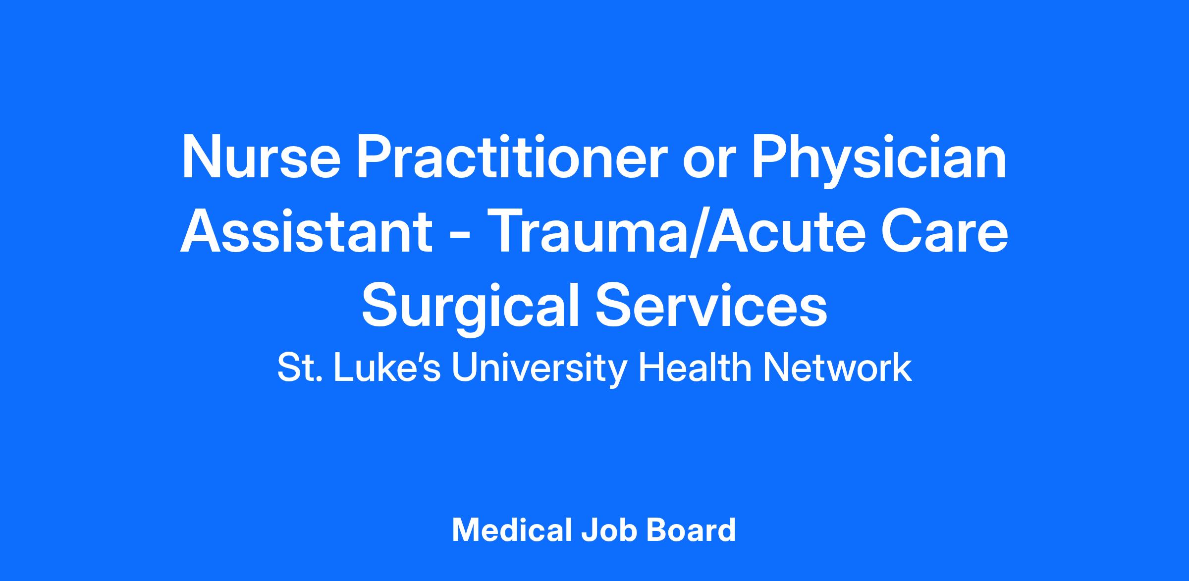 St. Luke’s is a thriving, integrated health network where more than 850 Advanced Practitioners are integral members of the health care team. Our employed providers benefit from a dedicated leadership structure, a professional organization, and a culture that puts patient care at the center. With an established department of advanced practice that has a dedicated leadership structure, and with room for advancement and growth within the Network.