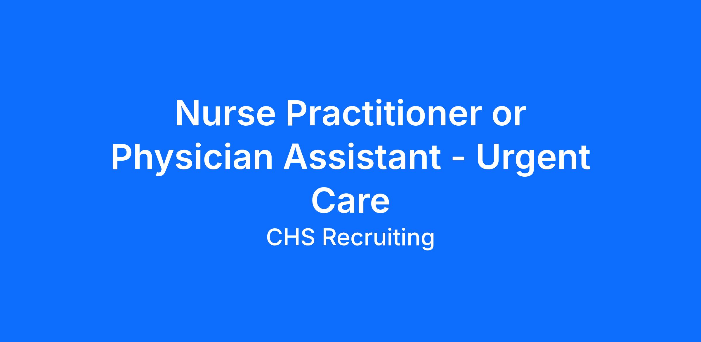 Nurse Practitioner or Physician Assistant - Urgent Care