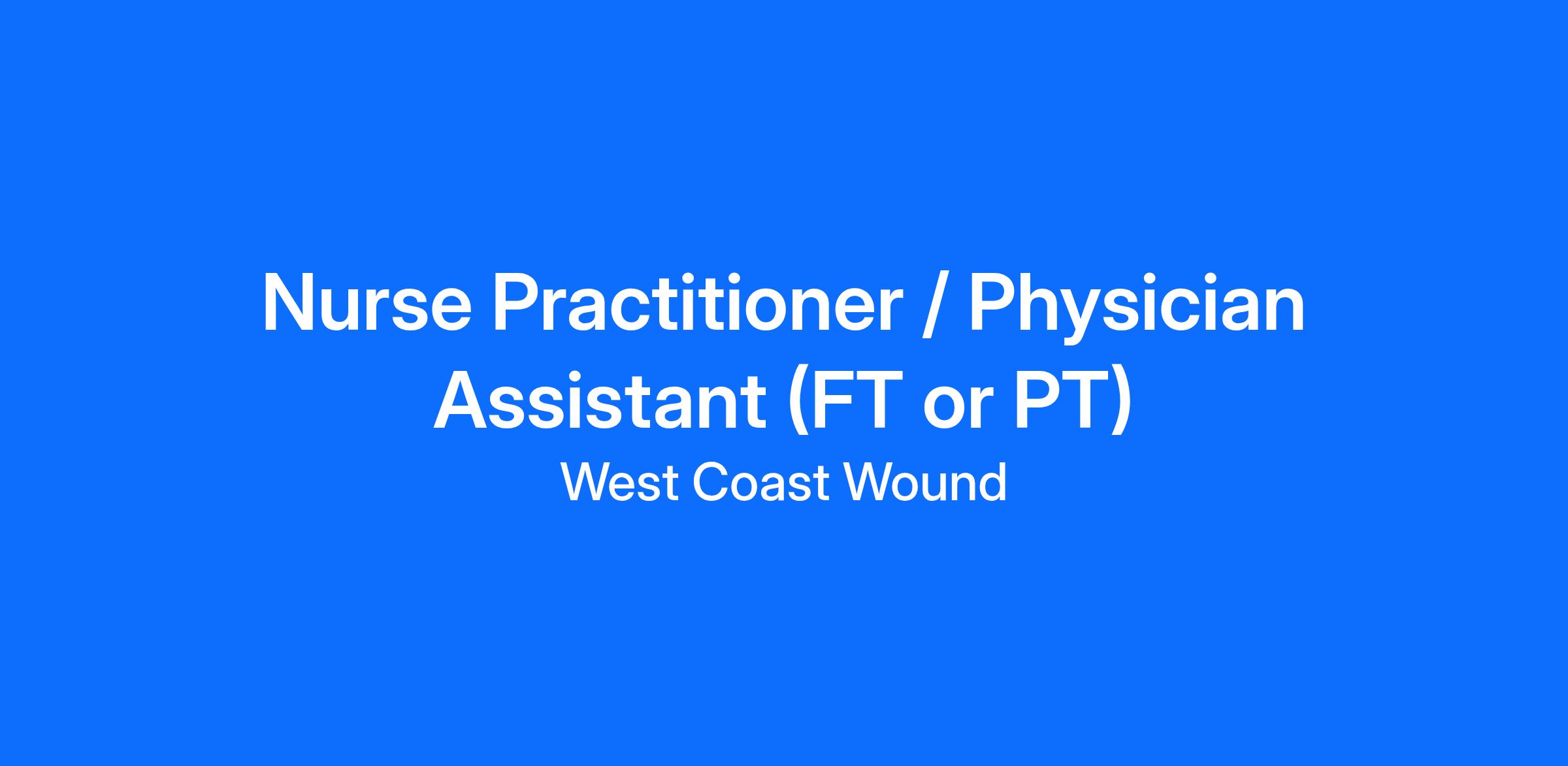 Are you a Nurse Practitioner or PA looking to join a fast-growing team making a difference in the way patients' wounds are being healed? If so, West Coast Wound is the right place to be!