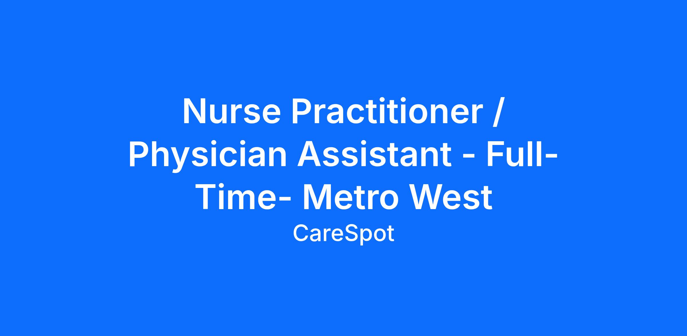 What you�ll be doing: We are hiring a Nurse Practitioner or Physician Assistant to treat our patients in a wide array of urgent care needs. A typical day will include: