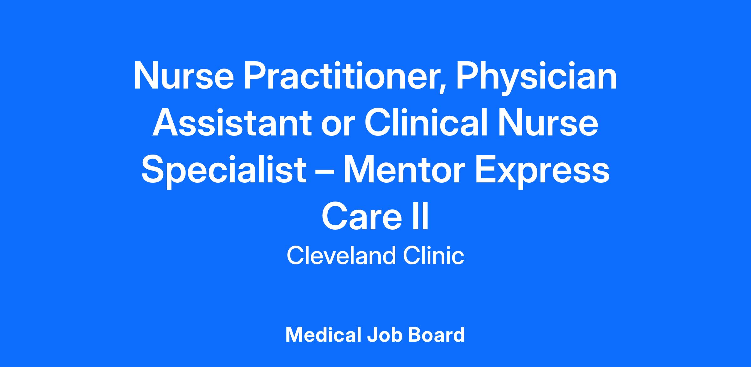 Nurse Practitioner, Physician Assistant or Clinical Nurse Specialist – Mentor Express Care II