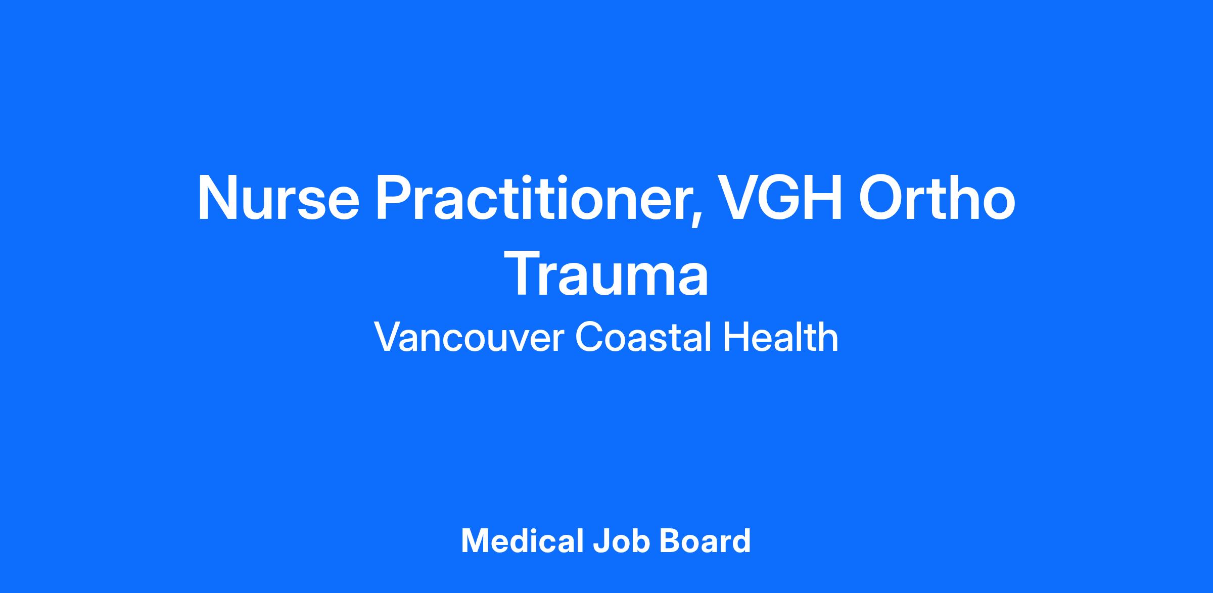 This new Ortho Trauma Nurse Practitioner role offers an exciting possibility for the NP focused on acute care, who enjoys a fast-paced environment and working in a strong interdisciplinary team. Located at Vancouver General Hospital, this role aims to provide consistent medical care to inpatients, reducing average length of stay and improving patient flow. Nurse Practitioners at VCH are privileged and credentialed as members of Medical Staff. We believe in sustainable and exciting NP positions, and you will be supported by NP Professional Practice as well as your VGH Medical Leadership, with opportunity to grow as a leader.