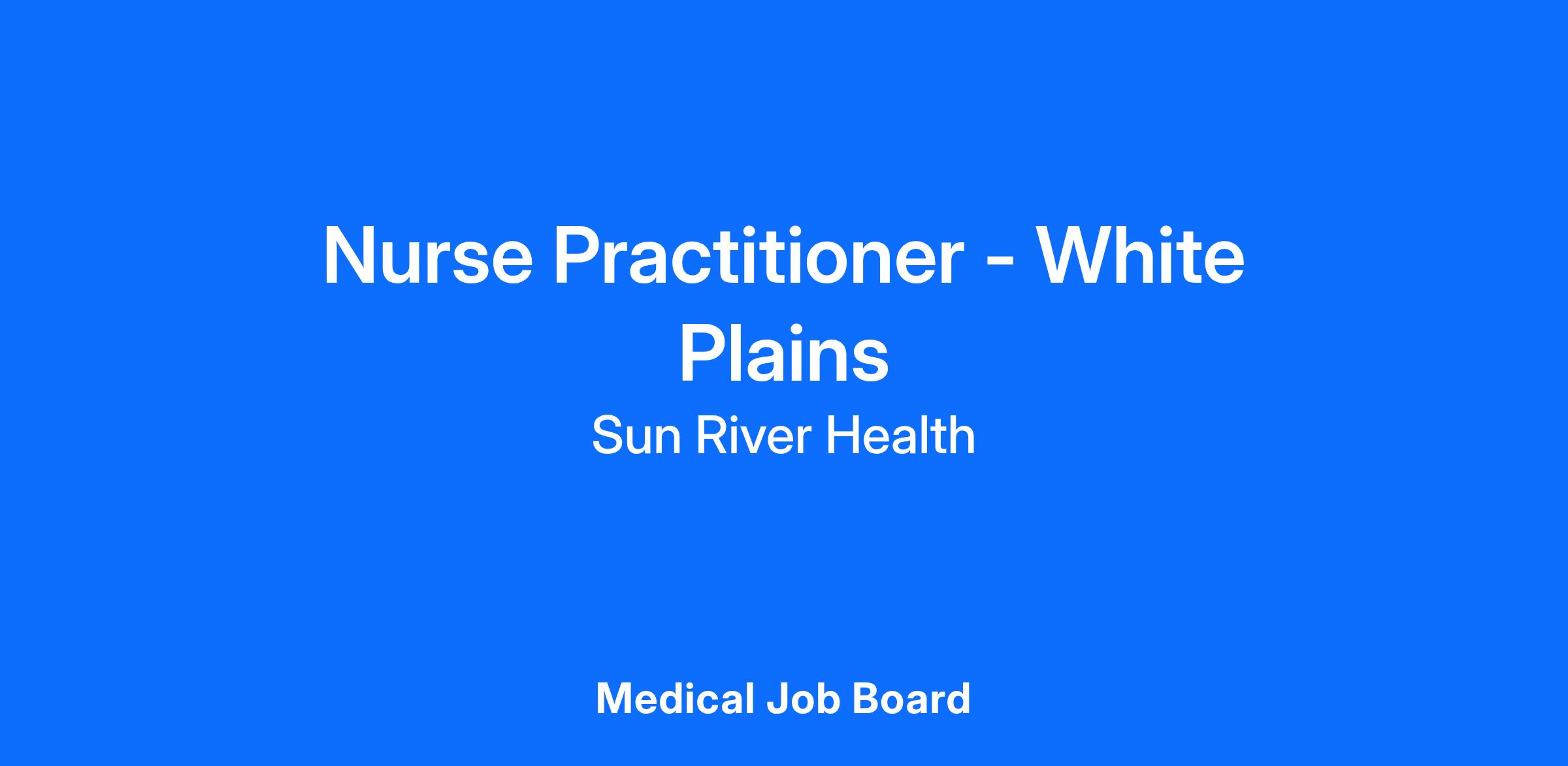 Sun River Health provides the highest quality of comprehensive primary, preventative and behavioral health services to all who see it, regardless of insurance status and ability to pay, especially for the underserved and vulnerable. Sun River Health is a Federally Qualified, Non-Profit Health Center serving communities in Suffolk, Rockland, Orange, Dutchess, Ulster, Sullivan, Columbia and Westchester County. Sun River Health is currently seeking Full-Time Nurse Practitioner to join our team supporting the White Plains site.