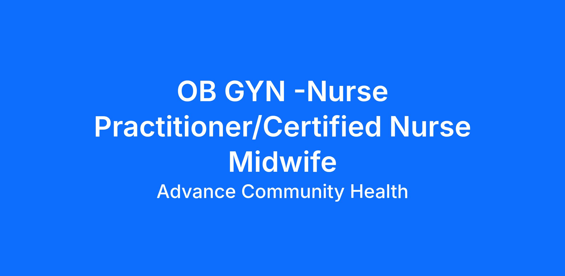 Join Advance Community Health as a FT/PT Nurse Practitioner/Certified Nurse Midwife for our OB-GYN / Women's Center at our Southeast Raleigh location. The OB/GYN Nurse Practitioner plays a crucial role in providing comprehensive healthcare services to women throughout their reproductive lives. This position involves conducting full scope women's care including, well-women checks, family planning, pre-natal care, diagnosing conditions, and developing treatment plans tailored to each patient's needs. The Nurse Practitioner will collaborate with physicians and other healthcare professionals to ensure high-quality care and patient education. Ultimately, the goal of this role is to enhance the health and well-being of patients while promoting preventive care and education.