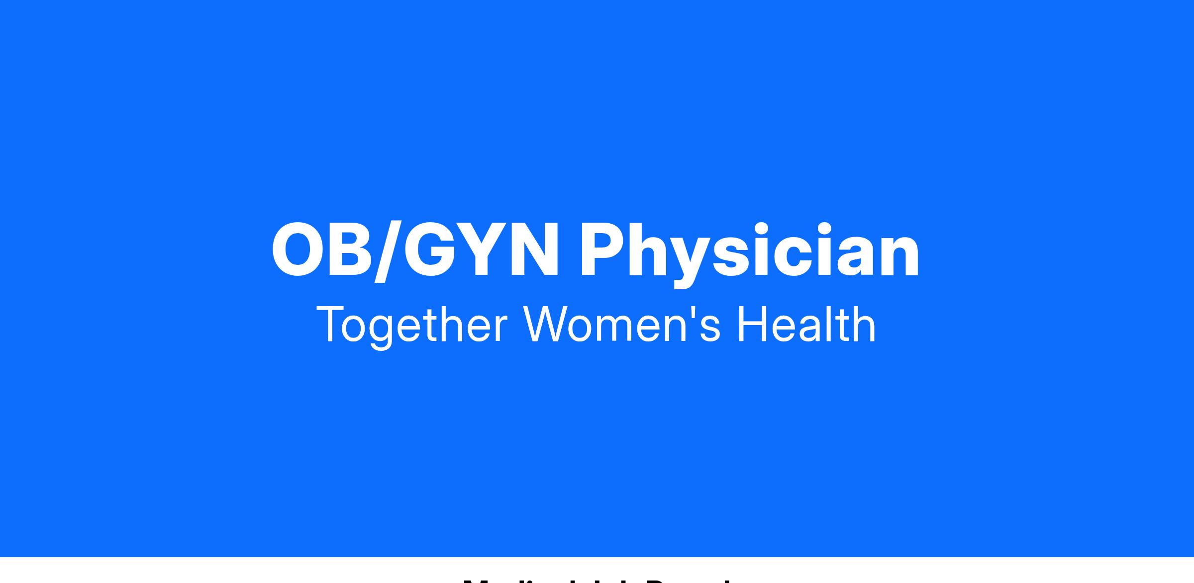 Comprehensive Woman’s Care (practice partner of Together Women’s Health) is seeking a full-time associate OB/GYN Physician to join their Metro Detroit practice group.