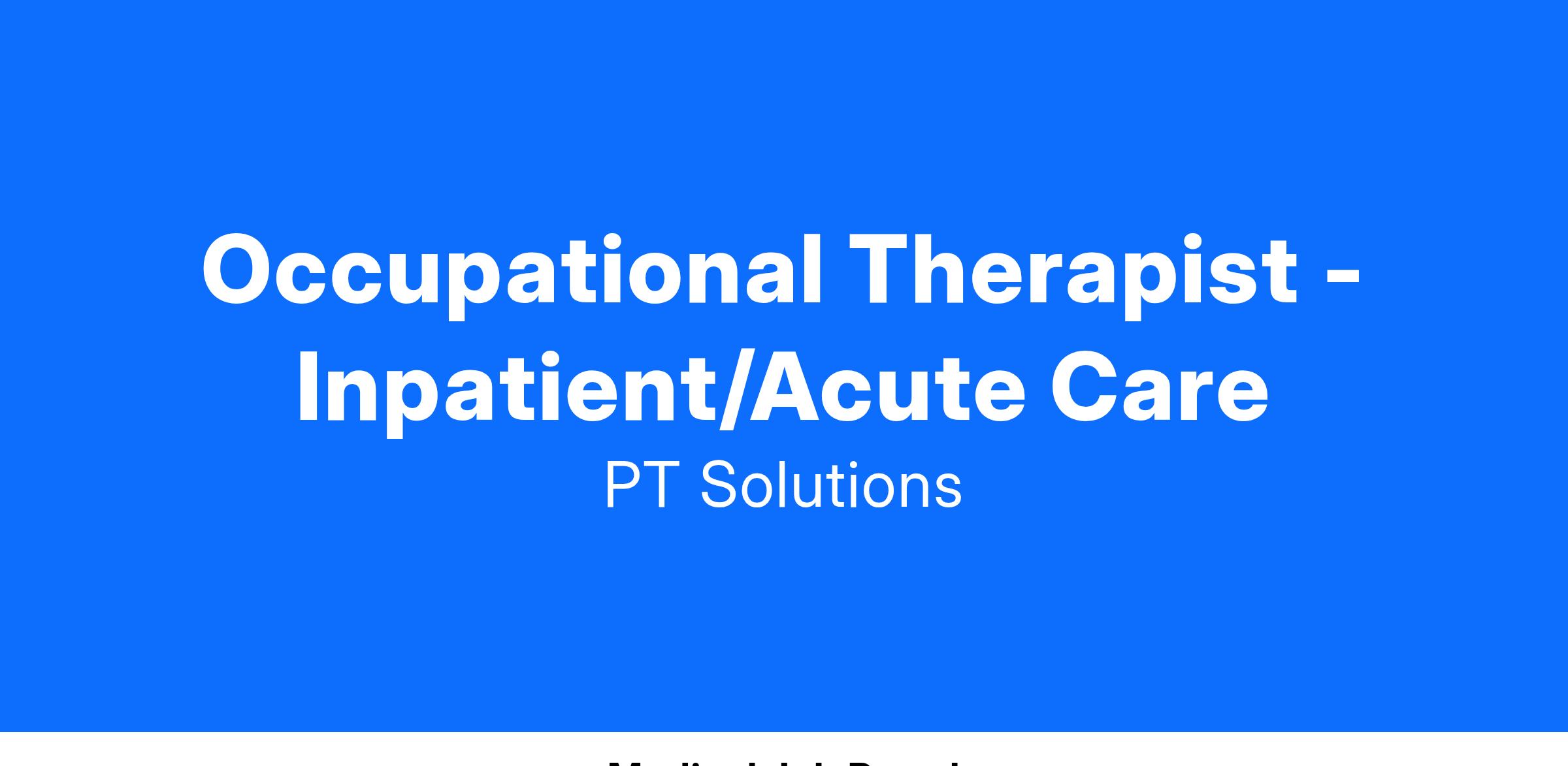 As an Inpatient Occupational Therapist, you'll work one-on-one with hospitalized patients to bring them a sense of normalcy and independence through self-care management and Activities of Daily Living. You are comfortable communicating and educating patients, family members, and caregivers on how to best assist with daily routines. This role gives you the opportunity for interdisciplinary team collaboration to ensure the best and most evidenced based practice for our patients.