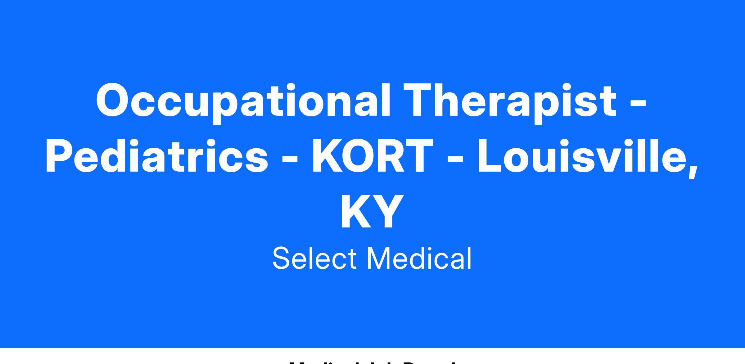 Position: Occupational Therapist - Pediatrics -Louisville, KY