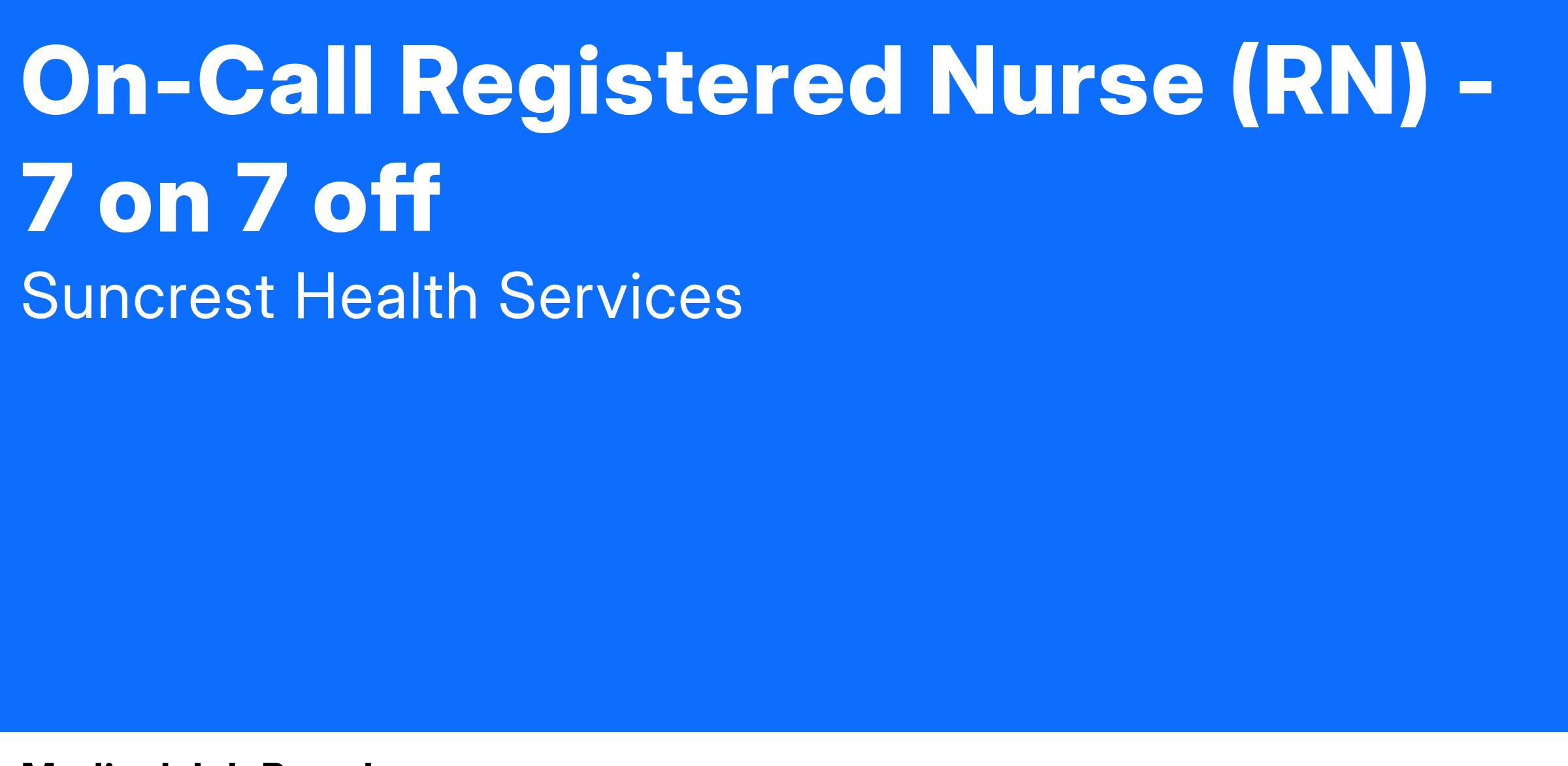 The Registered Nurse (RN) will be responsible for providing care and services for a group of hospice patients, visiting patients where they reside, which could include private homes, assisted living facilities and hospitals. As a RN, you will complete hospice admissions and patient visits as needed. Applicants must have great clinical and communication skills. The RN is responsible for answering calls from patients, families and customers. The RN will make nursing visits for symptom management, deaths, and admissions as needed. This RN must also be passionate about hospice care and be a great advocate for both hospice services and Suncrest Hospice. This position will be after hours on-call working seven days/nights on and seven nights/days off.Β