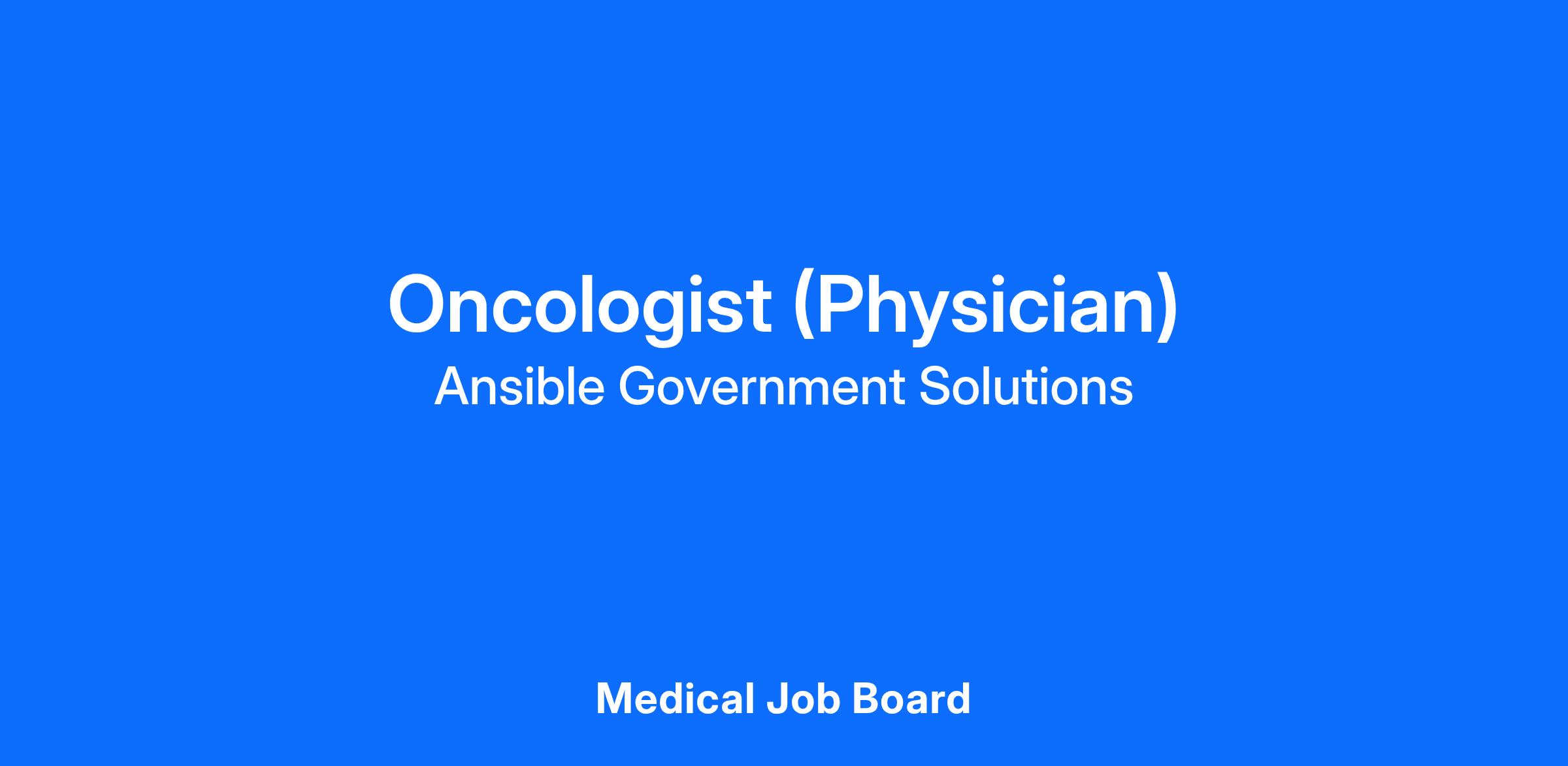 OverviewAnsible Government Solutions, LLC (Ansible) is currently recruiting an Oncologist to provide onsite services to eligible beneficiaries of the Providence VA Medical Center located at 830 Chalkstone Avenue, Providence, RI 02908. Shift scheduling is generally Mon-Fri, 8:00am-4:30pm and call. Full-time and Locum Tenens positions with generousΒ compensation packages are available.
