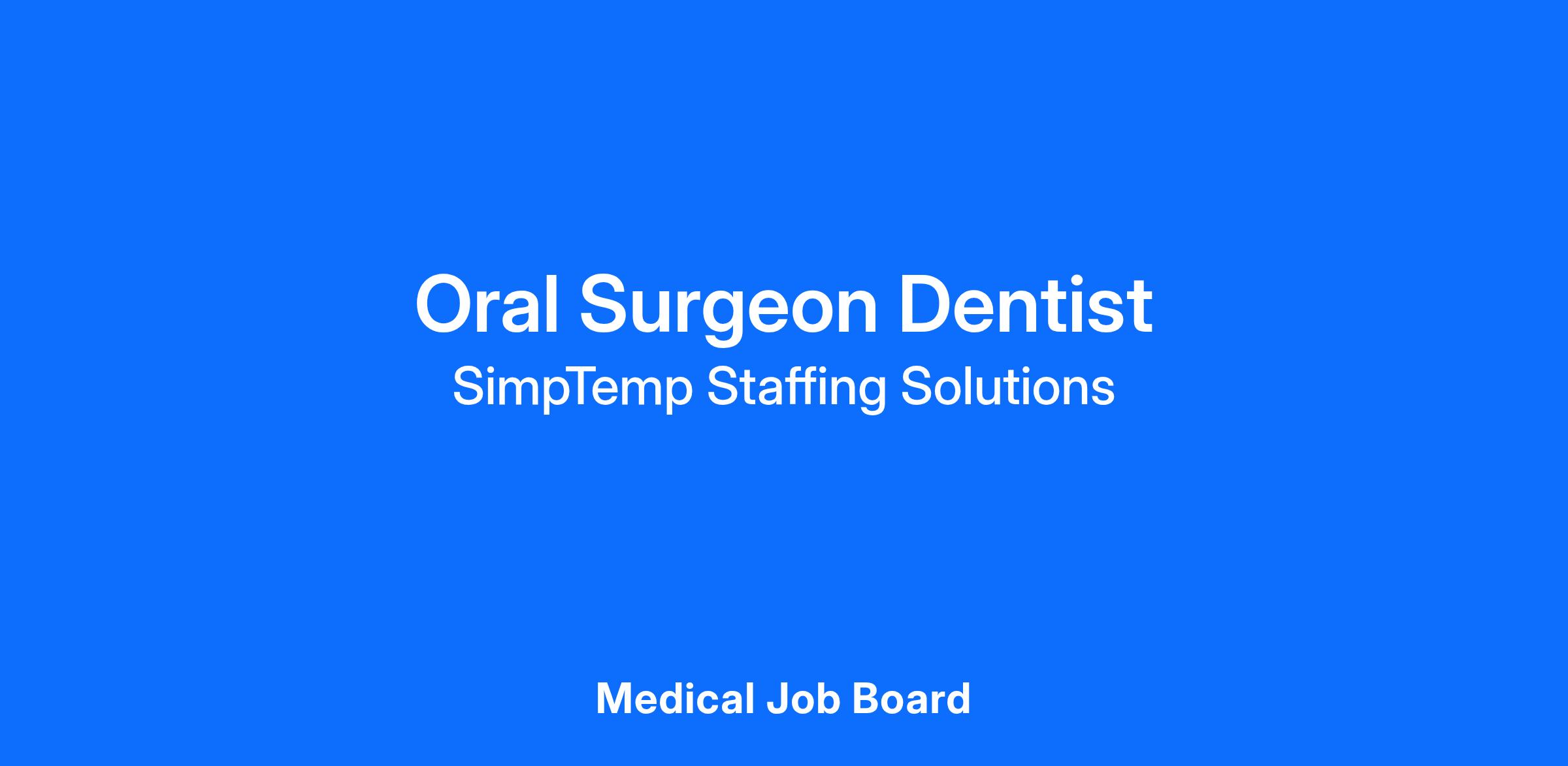 We are growing and looking for a full - time Oral Surgeon with BUY -IN (EQUITY) OPPORTUNITY. Doctor would provide surgical care and related procedures on the hard and soft tissues of the oral and maxillo -facial regions to treat diseases, injuries, or defects. May diagnose problems of the oral and maxillo -facial regions. May perform surgery to improve function or appearance.<\/span><\/span><\/span> <\/div> <\/div> Requirements:<\/u><\/b><\/span><\/span> <\/div> • Successful completion of accredited Oral Surgery program.<\/span><\/span><\/span> <\/span><\/span><\/div> • Licensed specialist in Oral Surgery.<\/span><\/span><\/span> <\/span><\/span><\/div> • D.D.S. or D.M.D, M.D with a current State license.<\/span><\/span><\/span> <\/span><\/span><\/div> • Minimum of two years of experience.<\/span><\/span><\/span> <\/span><\/span><\/div> • BLS and ACLS certified.<\/span><\/span><\/span> <\/div><\/td><\/tr><\/tbody><\/table> <\/div><\/span> Benefits<\/h3><\/span><\/span><\/div> Daily Guarantee and Production Bases <\/span> <\/span><\/span><\/div> <\/span><\/span><\/div> Benefits: <\/u><\/b><\/span> <\/span><\/span><\/div> Health Insurance, Vision Insurance, Supplemental Insurance, Commissions, Bonus System, Scrub Allowance, Signing Bonus, Health Savings Account, Flexible Spending Account<\/span><\/span><\/span><\/span><\/span><\/span> <\/div><\/span> |