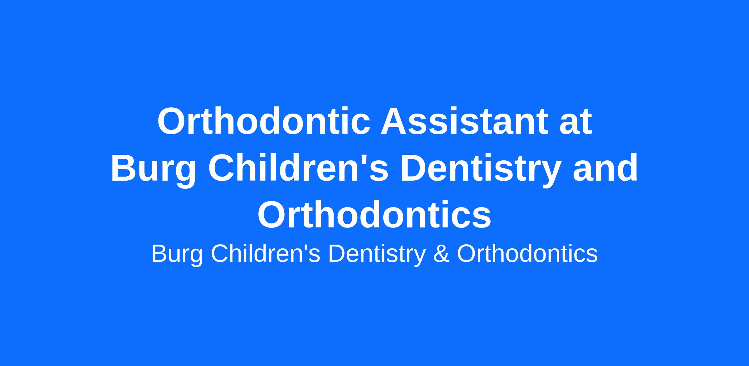 Burg Children’s Dentistry & Orthodontics is seeking a friendly, detail-oriented Orthodontic Assistant to join our well-established pediatric dental and orthodontic team. With an excellent reputation for delivering outstanding care and creating positive experiences for children and families, this is a great opportunity to grow your career in a supportive, patient-focused practice.