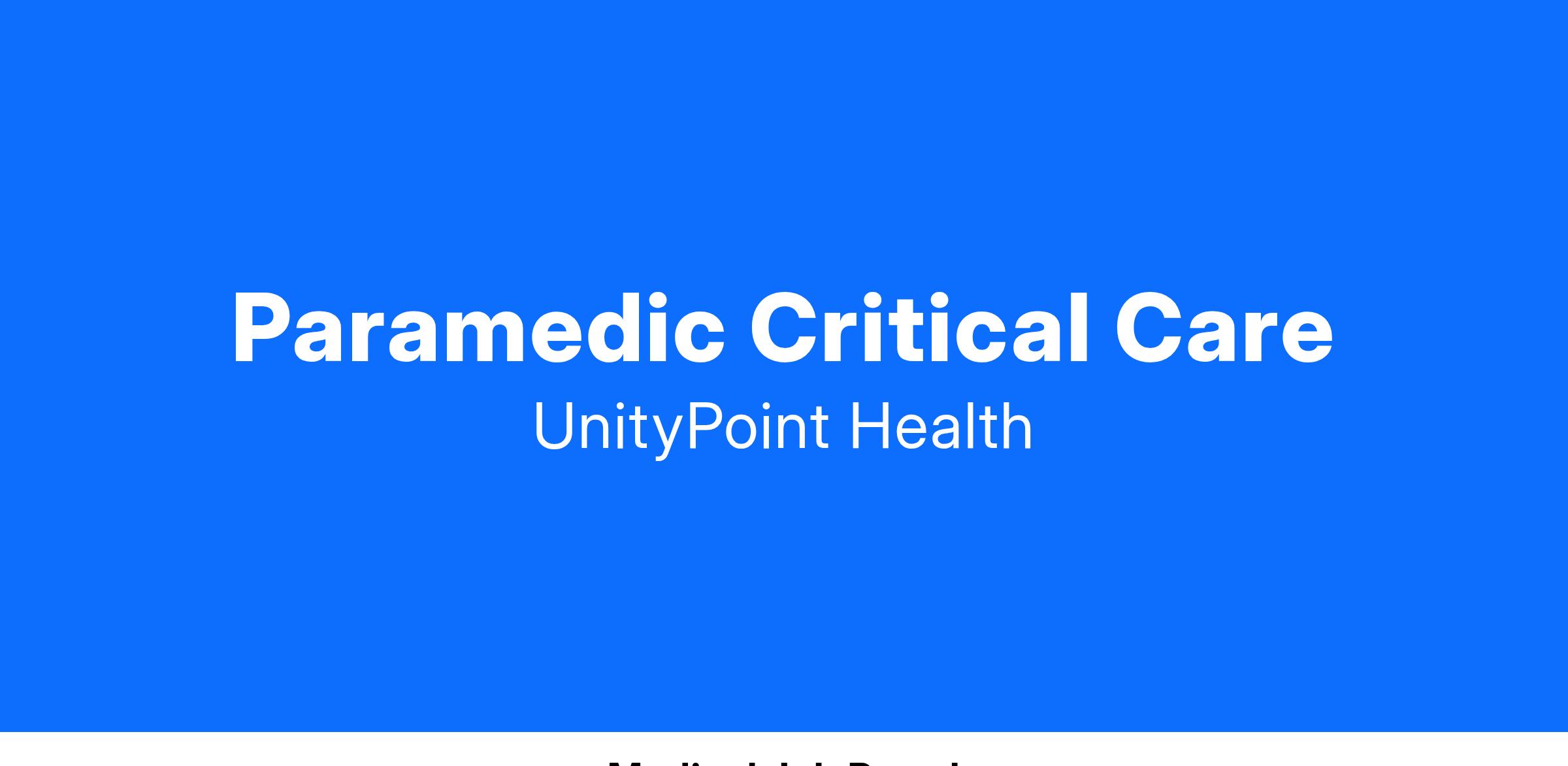 | Current Paramedic license in the state of Iowa. Must obtain NIHSS within 90 days of hire and maintain every two years thereafter. Completion of four hours of stroke education prior to the end of orientation and annually. | Critical Care Paramedic |
