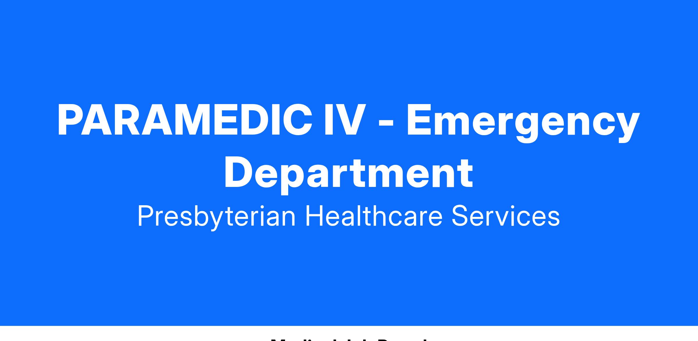 As a Paramedic IV in the Emergency Department, you will be responsible for utilizing the nursing process to provide direct patient care to an assigned group of patients during a shift. Responsible for prioritizing the delivery of direct nursing care using time and resources efficiently integrating a standards-based framework model.